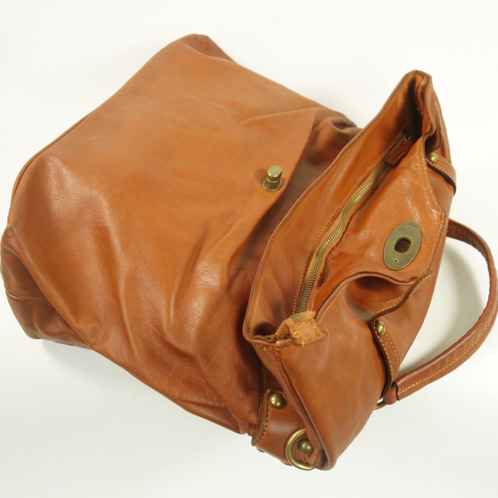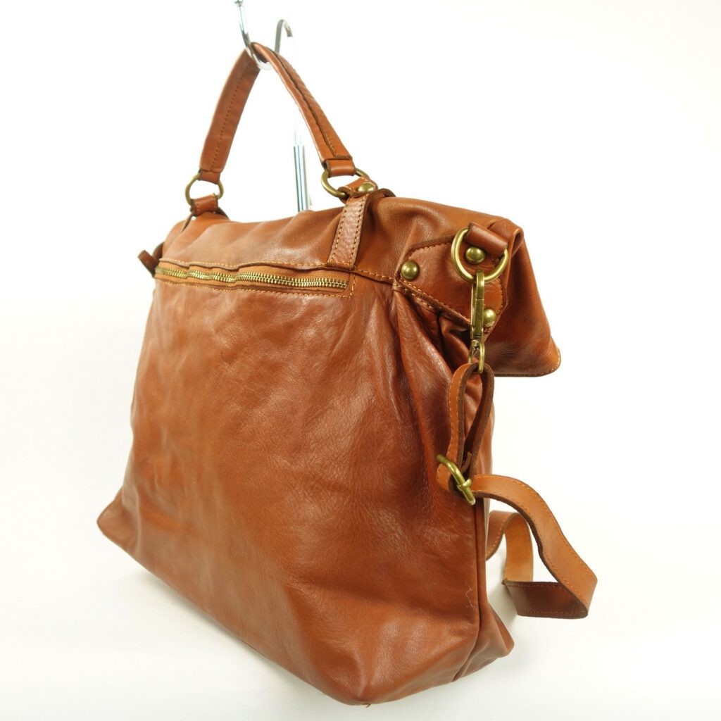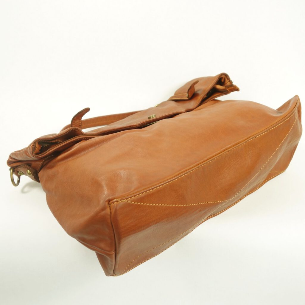 L’admirer, c’est un peu l’adopter! Caractère et style qui accroche le regard, ce grand sac à main pour femme en cuir vintage est de couleur naturel marron clair.