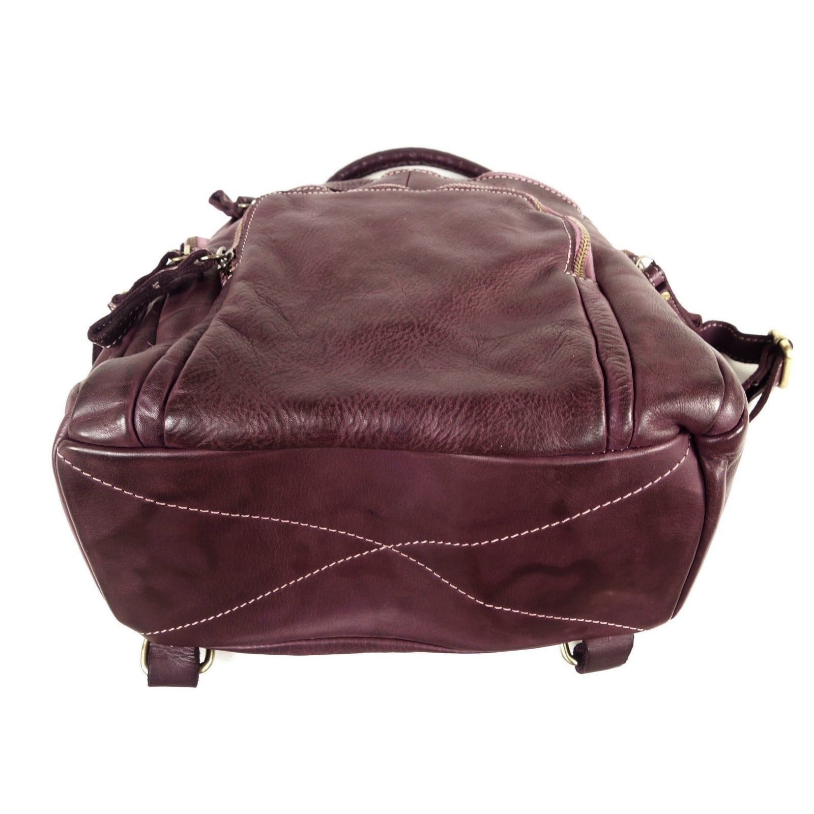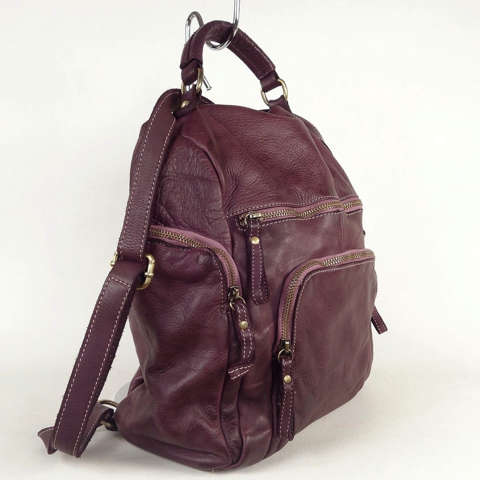 Il n’est pas indispensable d’être une experte en sac à main pour apprécier tous les charmes de ce joli sac à dos femme en cuir patiné couleur rouge foncé bordeaux.