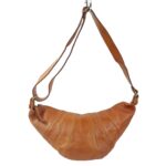 Nous vous présentons ici un sac banane en cuir vintage marron qui se porte en bandoulière, à l’épaule ou en travers.