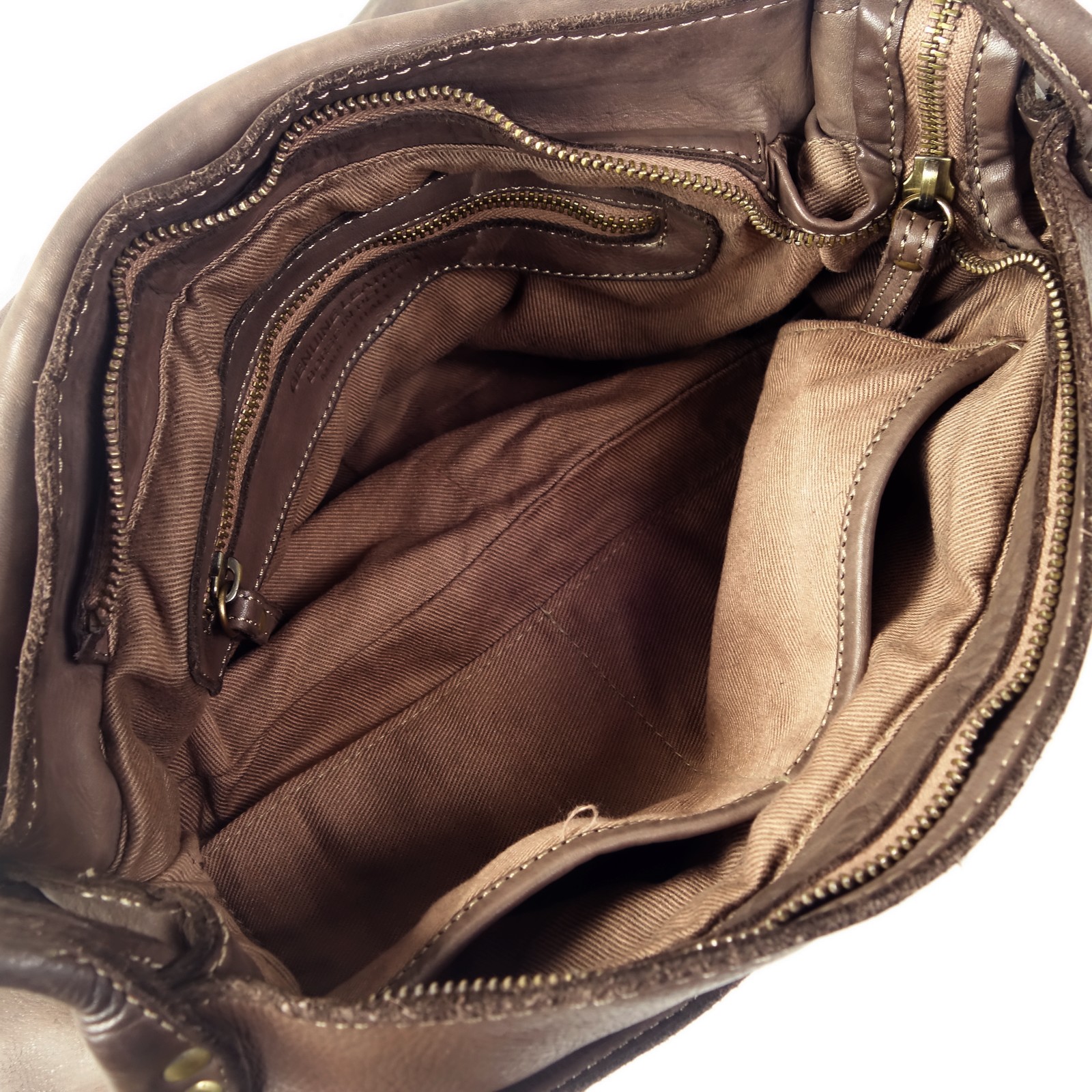 Le compartiment intérieur est doublé de textile et comporte trois poches: une zippée et deux plaquées. L’espace disponible est évidemment confortable vu la taille du sac.