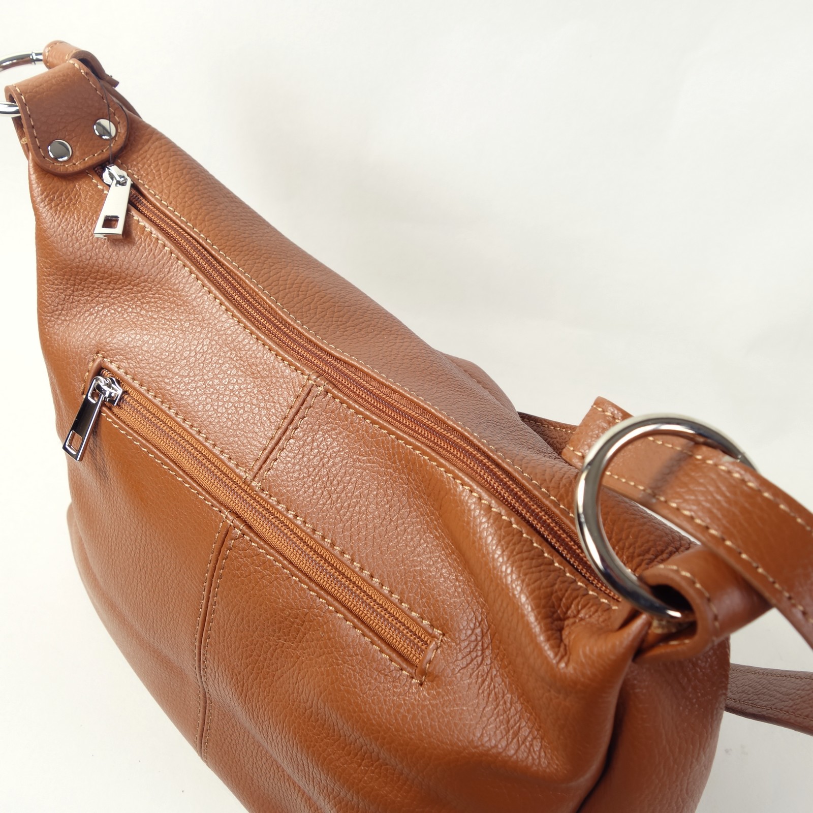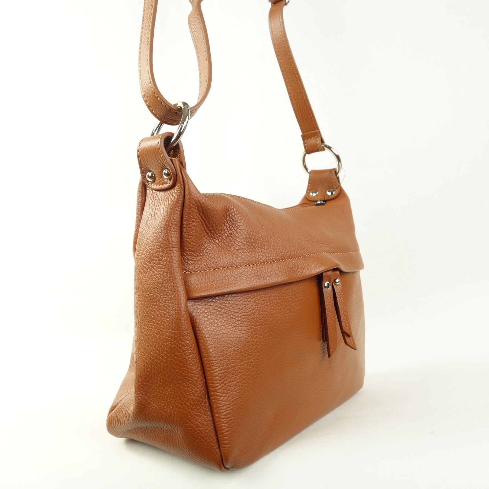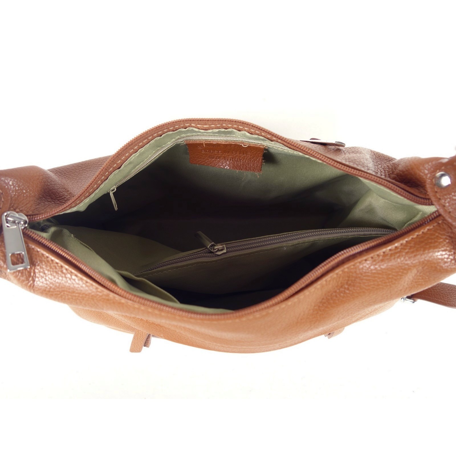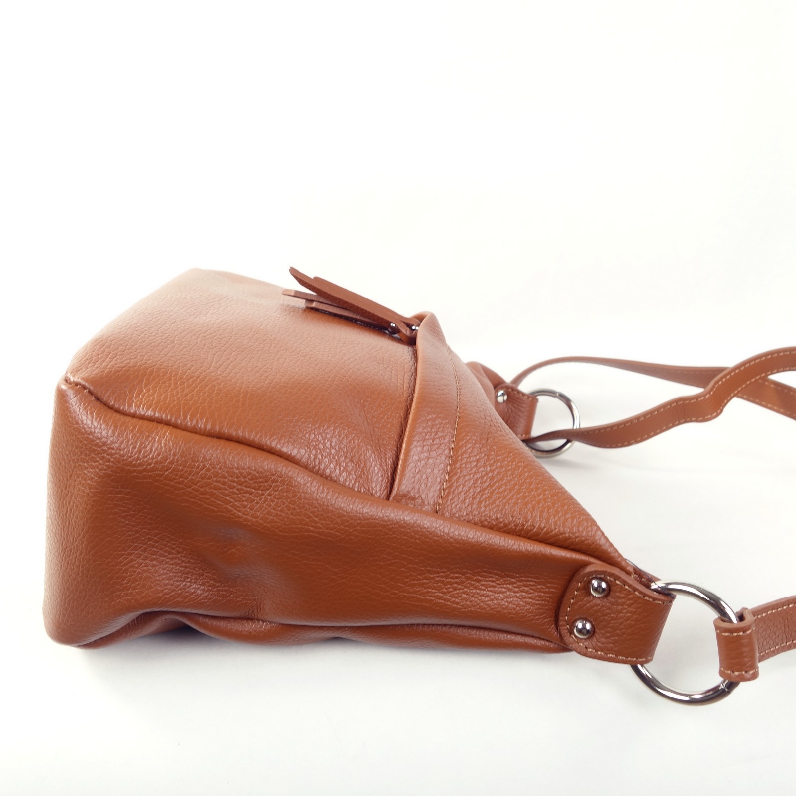 Côté utile, il y a donc une bandoulière réglable et en cuir, fixée à des anneaux métal sur pièce de cuir rivetée.