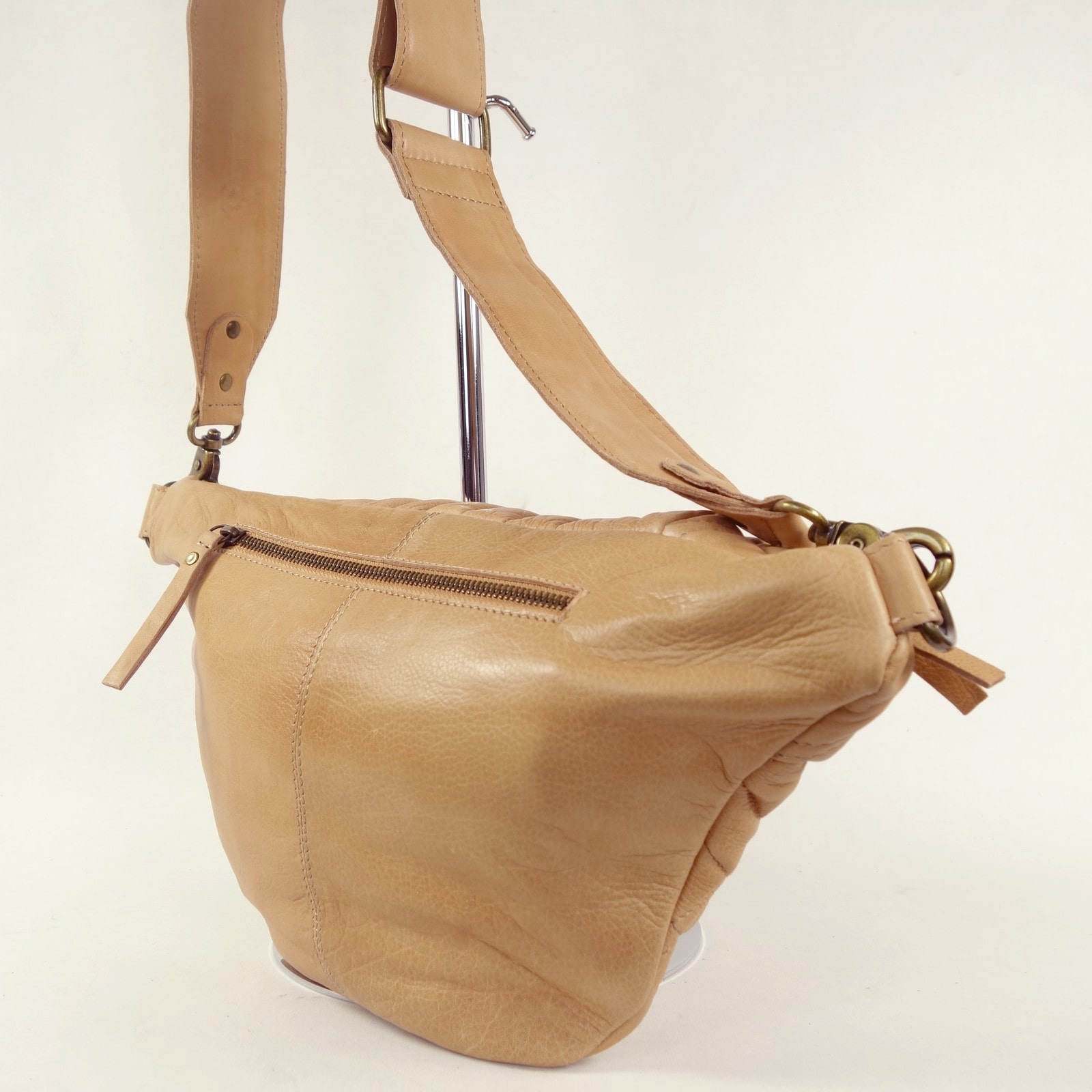 Son design franchement original en cuir matelassé couleur camel et sa ligne fuselée en font un accessoire atypique très intéressant.