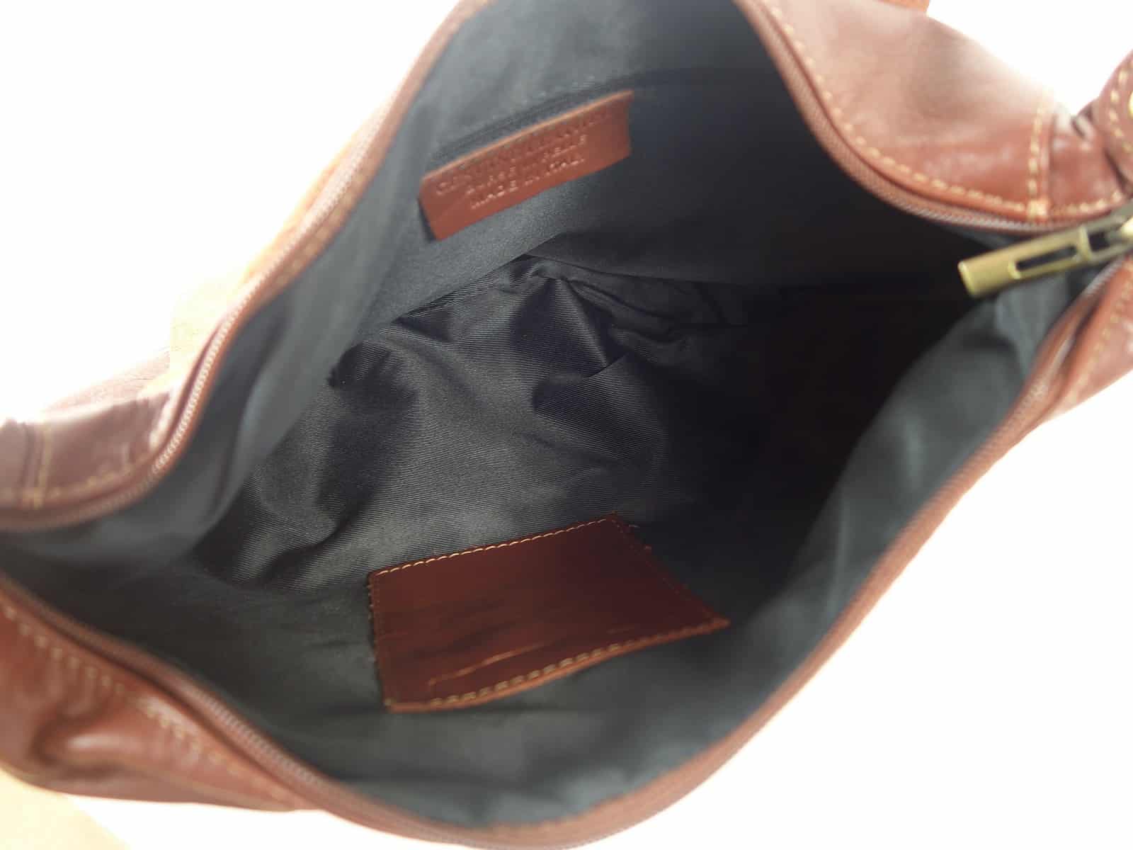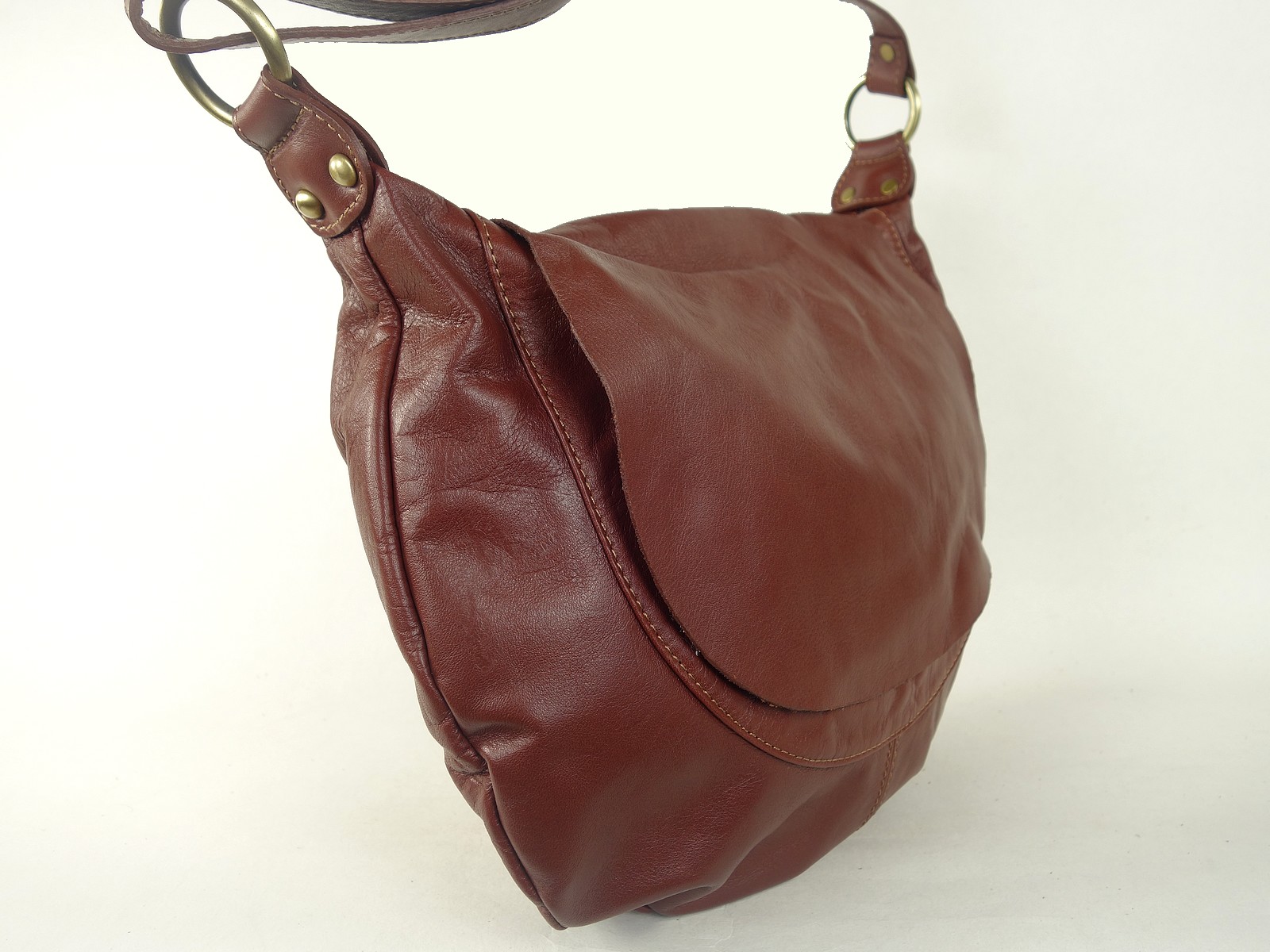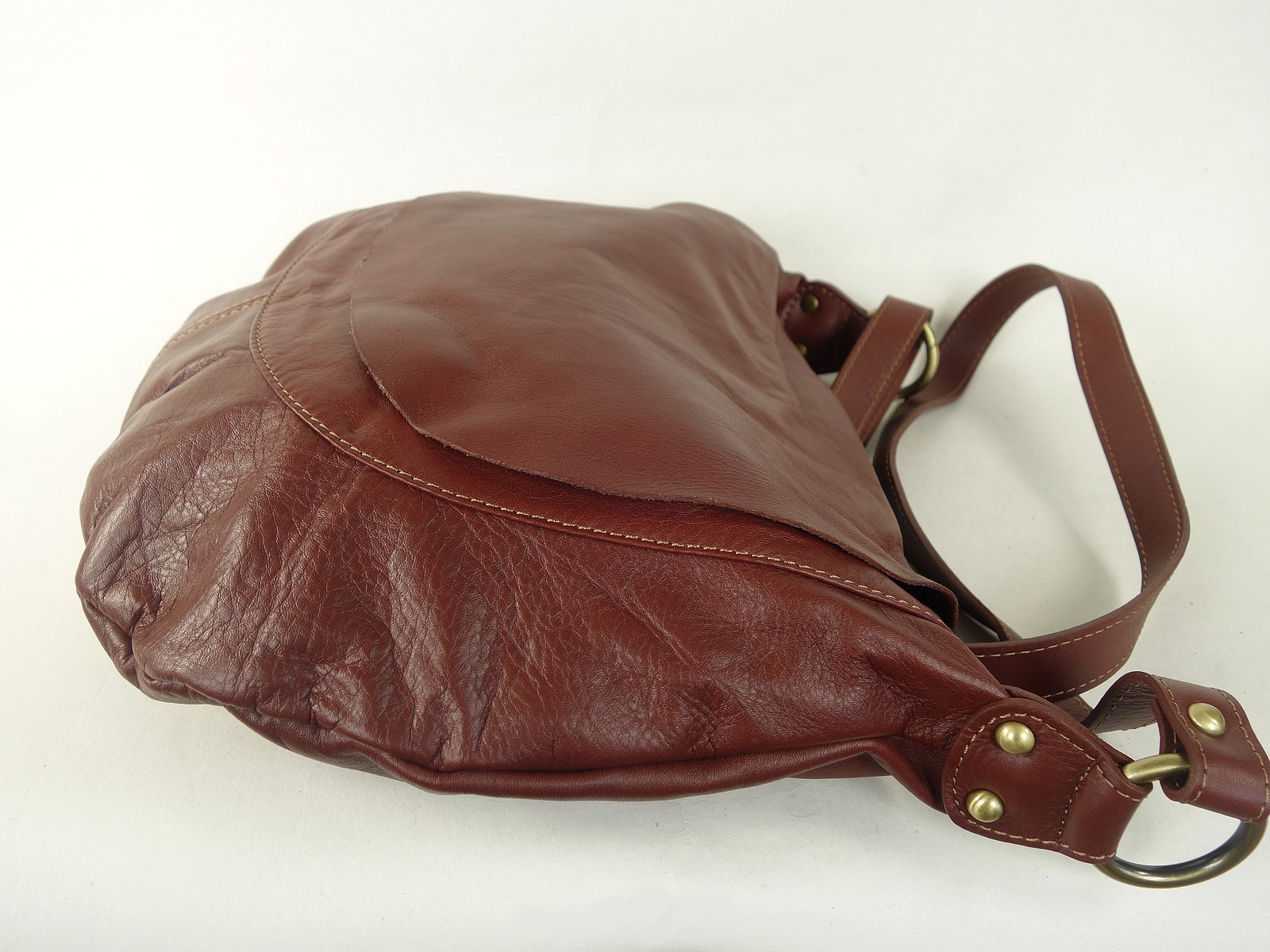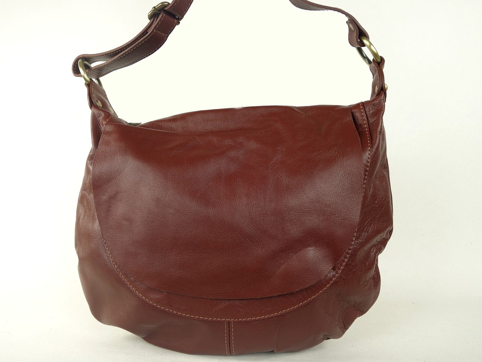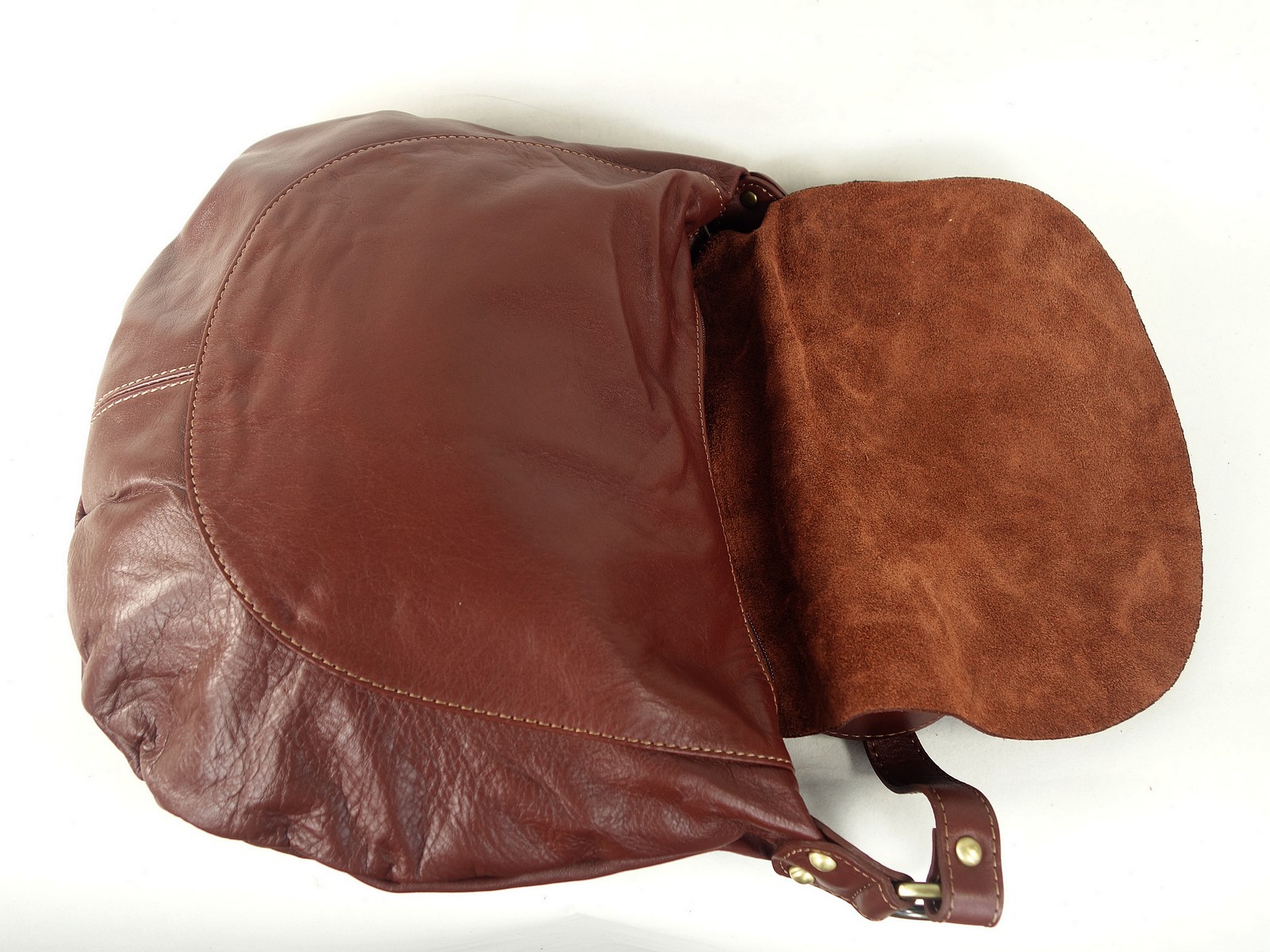 Cette belle besace pour femme a le charme authentique des bons sacs à main de qualité: le cuir de couleur marron est fin et souple, ce qui rend ce modèle très léger;