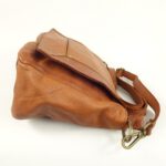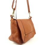 Ce sac bandoulière pour femme en cuir souple couleur naturel se présente comme une besace avec rabat qui se porte en travers ou à l’épaule.