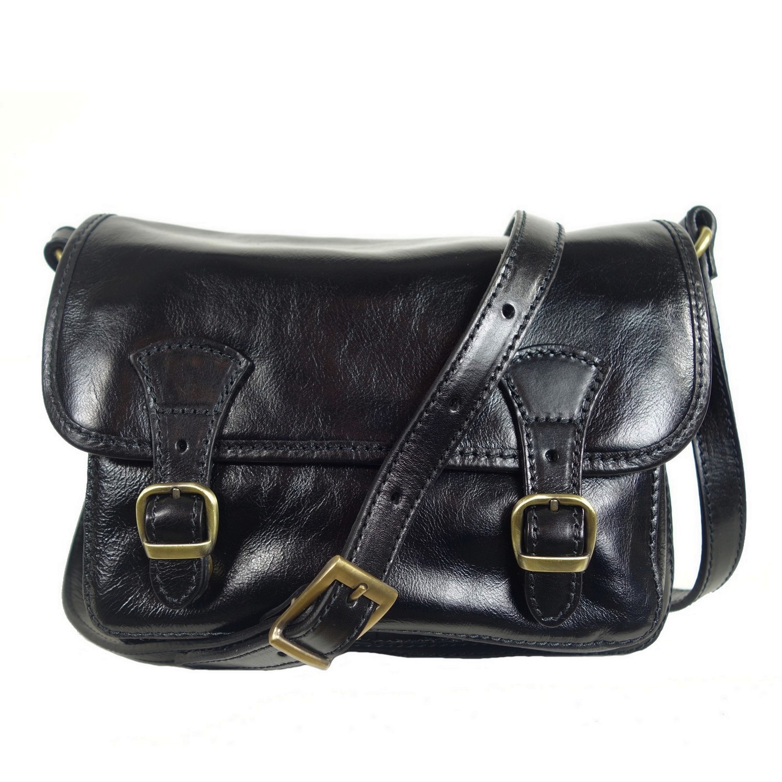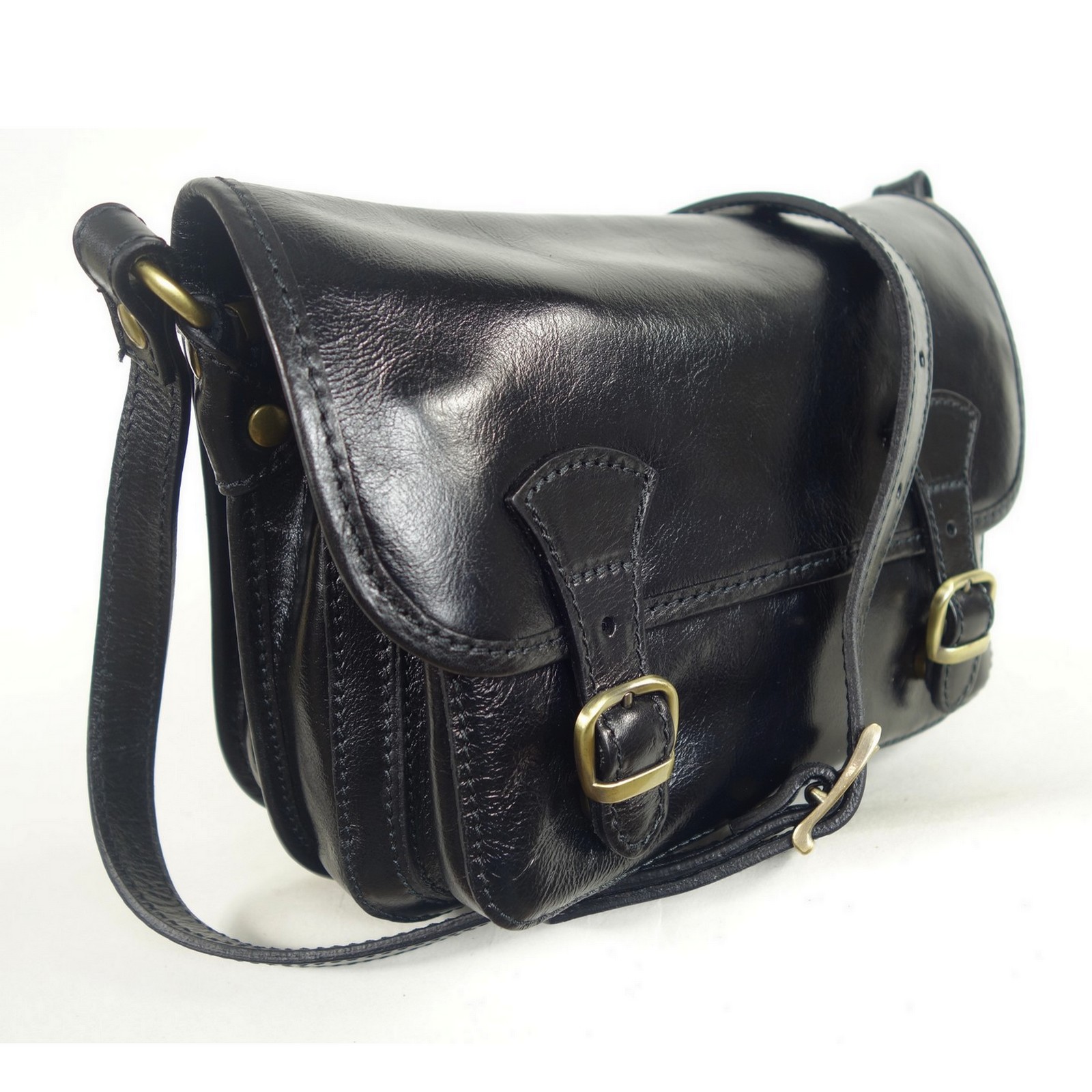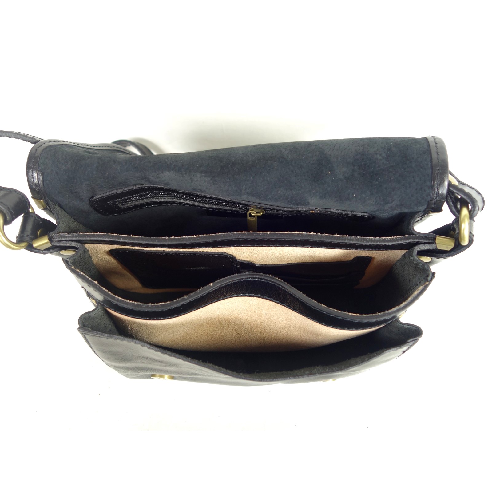 Cette jolie petite besace pour femme en cuir noir se porte en bandoulière. Elle vous séduira pour sa présentation typée vintage.