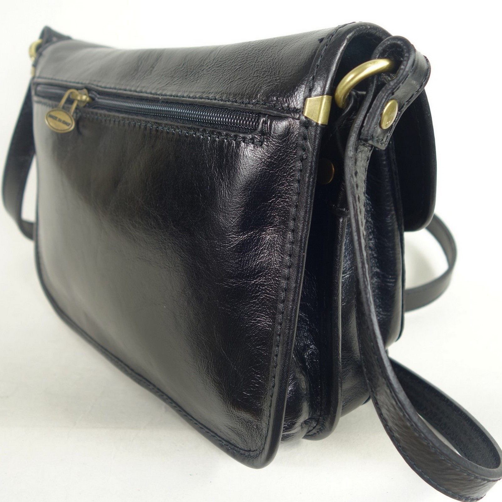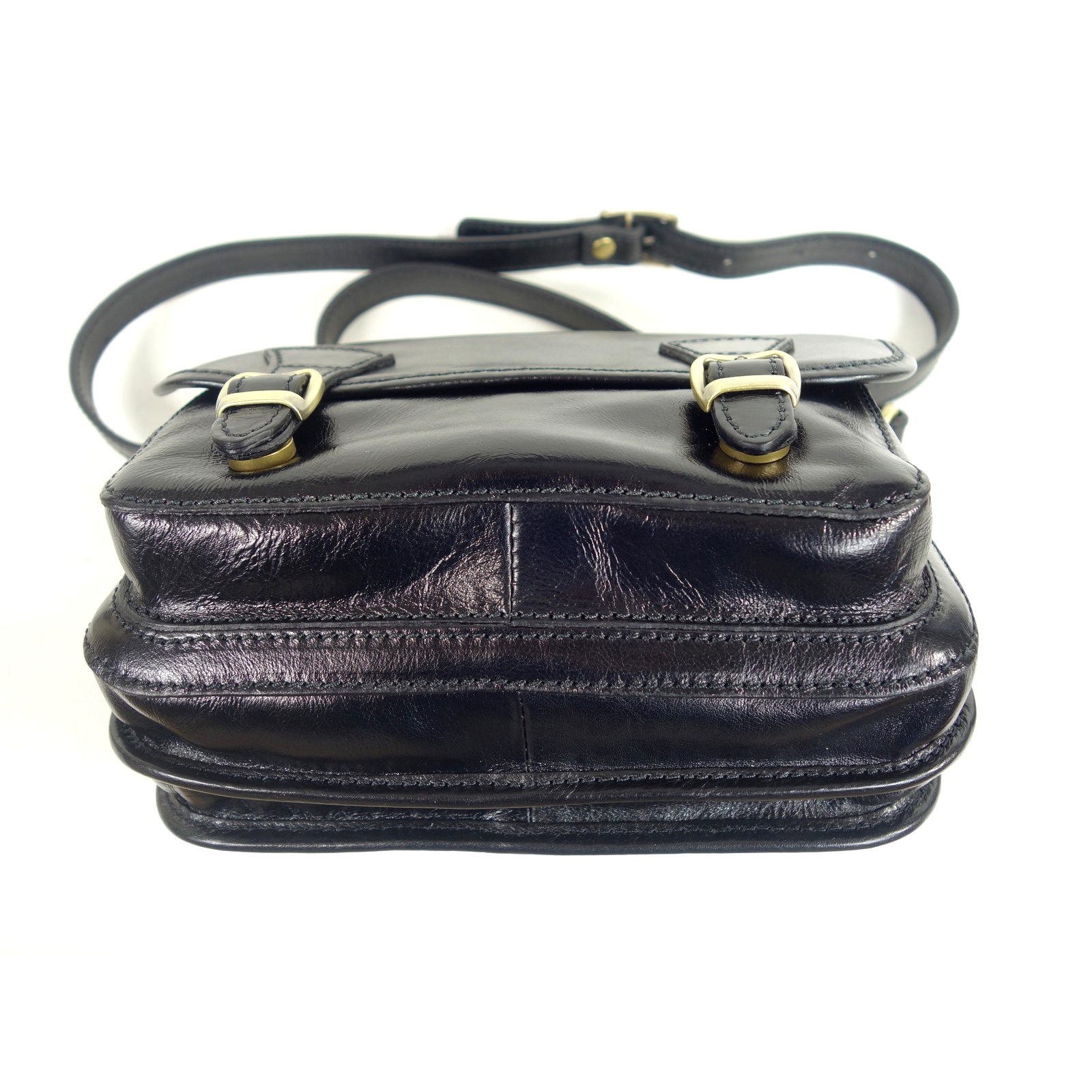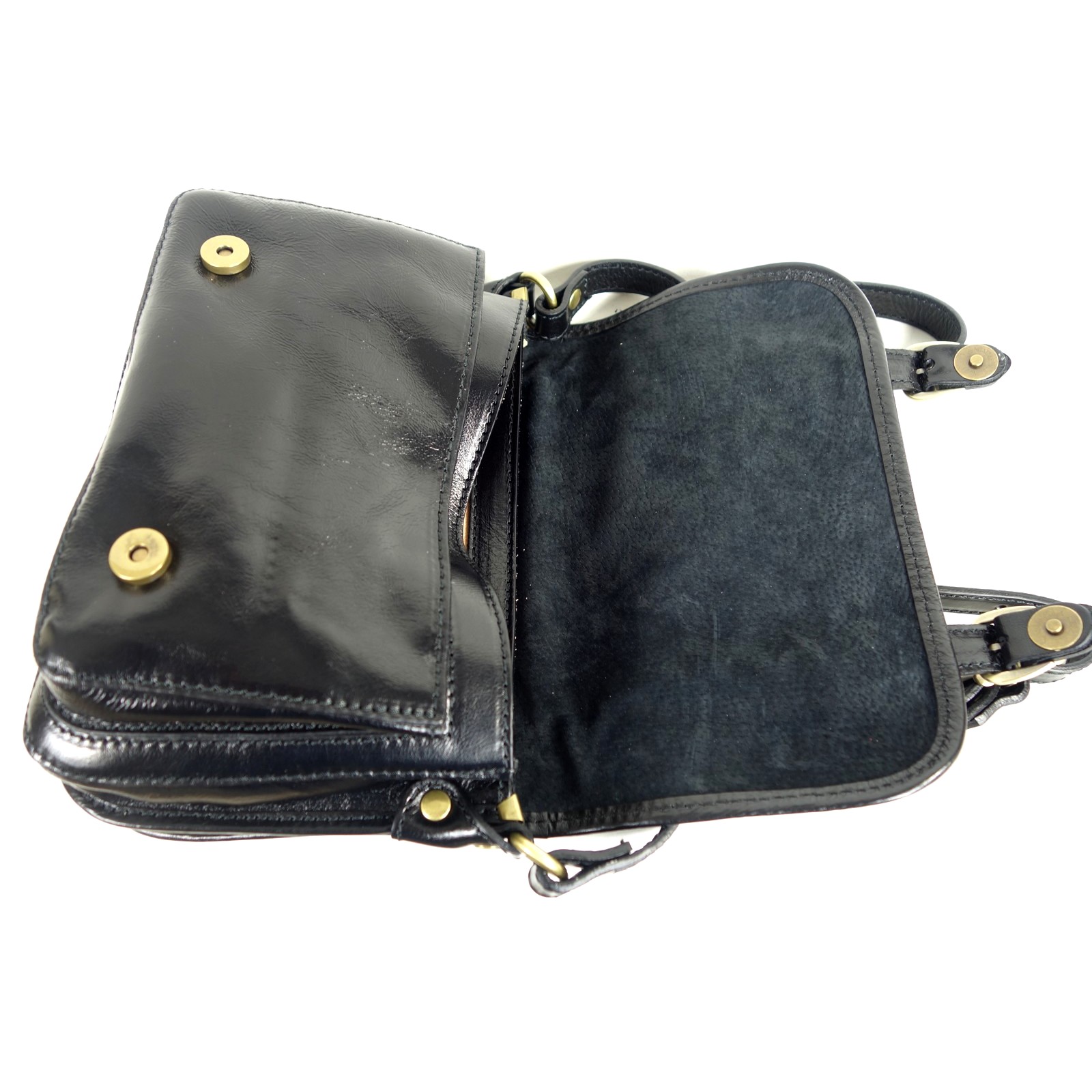 Cette jolie petite besace pour femme en cuir noir se porte en bandoulière. Elle vous séduira pour sa présentation typée vintage.