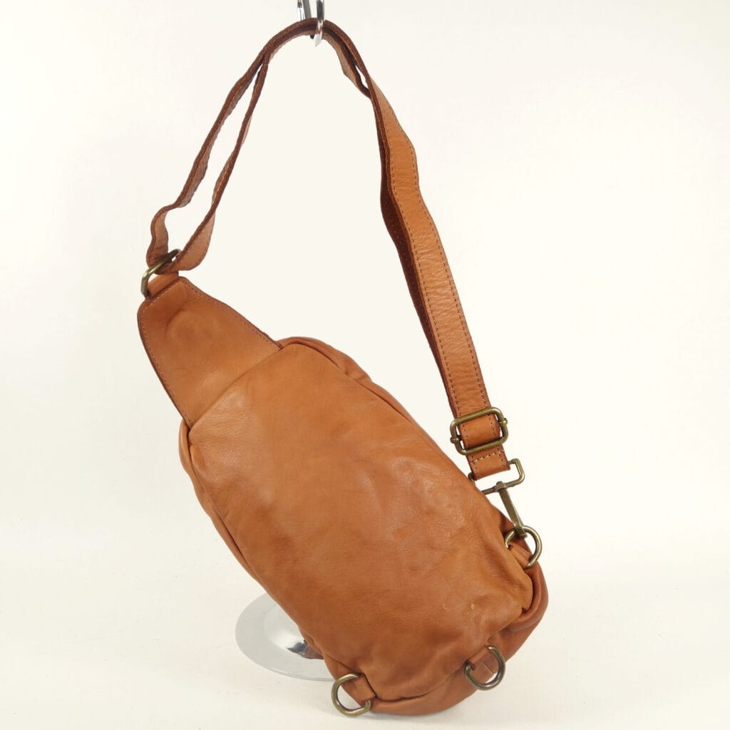 Parfaitement dans l’air du temps, ce sac banane holster pour femme est en cuir souple lavé de couleur naturel et se porte croisé à la poitrine ou bien à l’épaule.