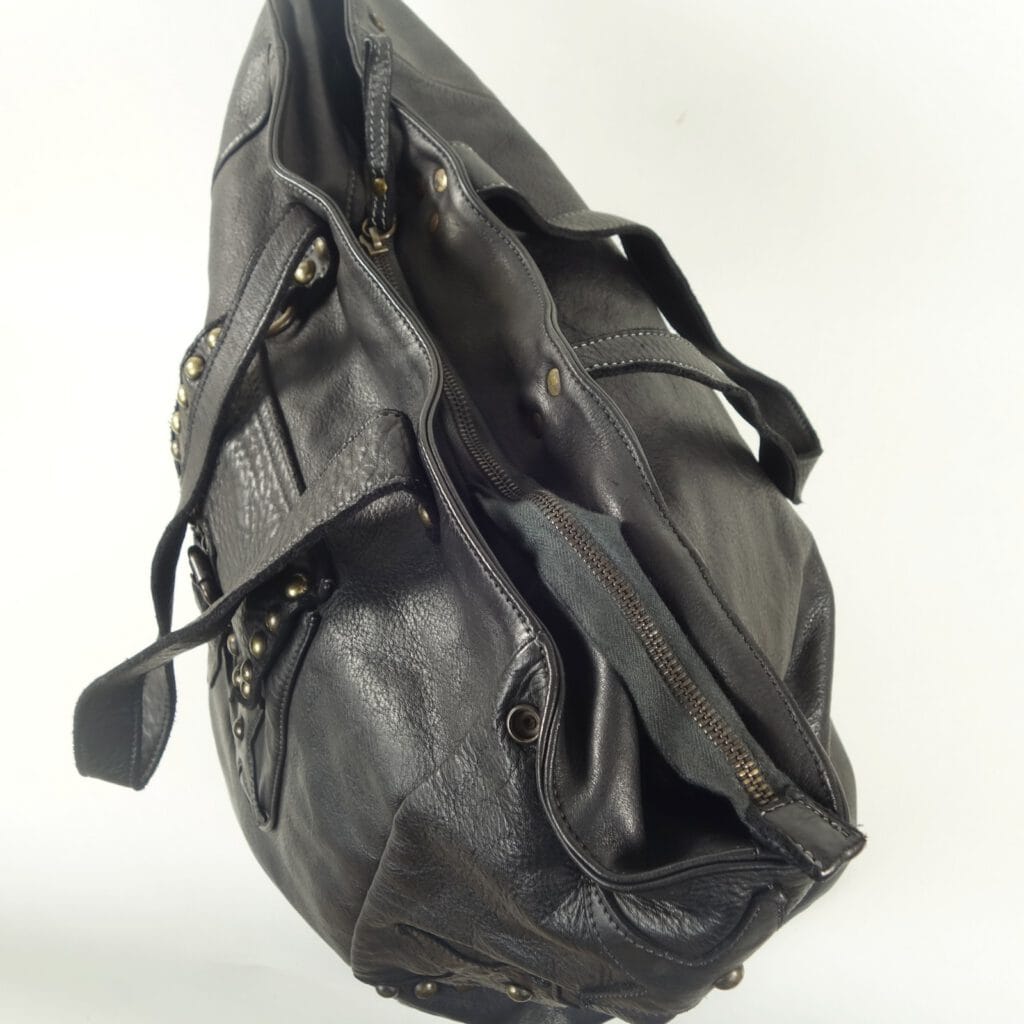 Ligne originale séduisante, souplesse du cuir de veau vieilli juste ce qu’il faut, format généreux: voilà déjà de quoi s’emballer côté présentation.