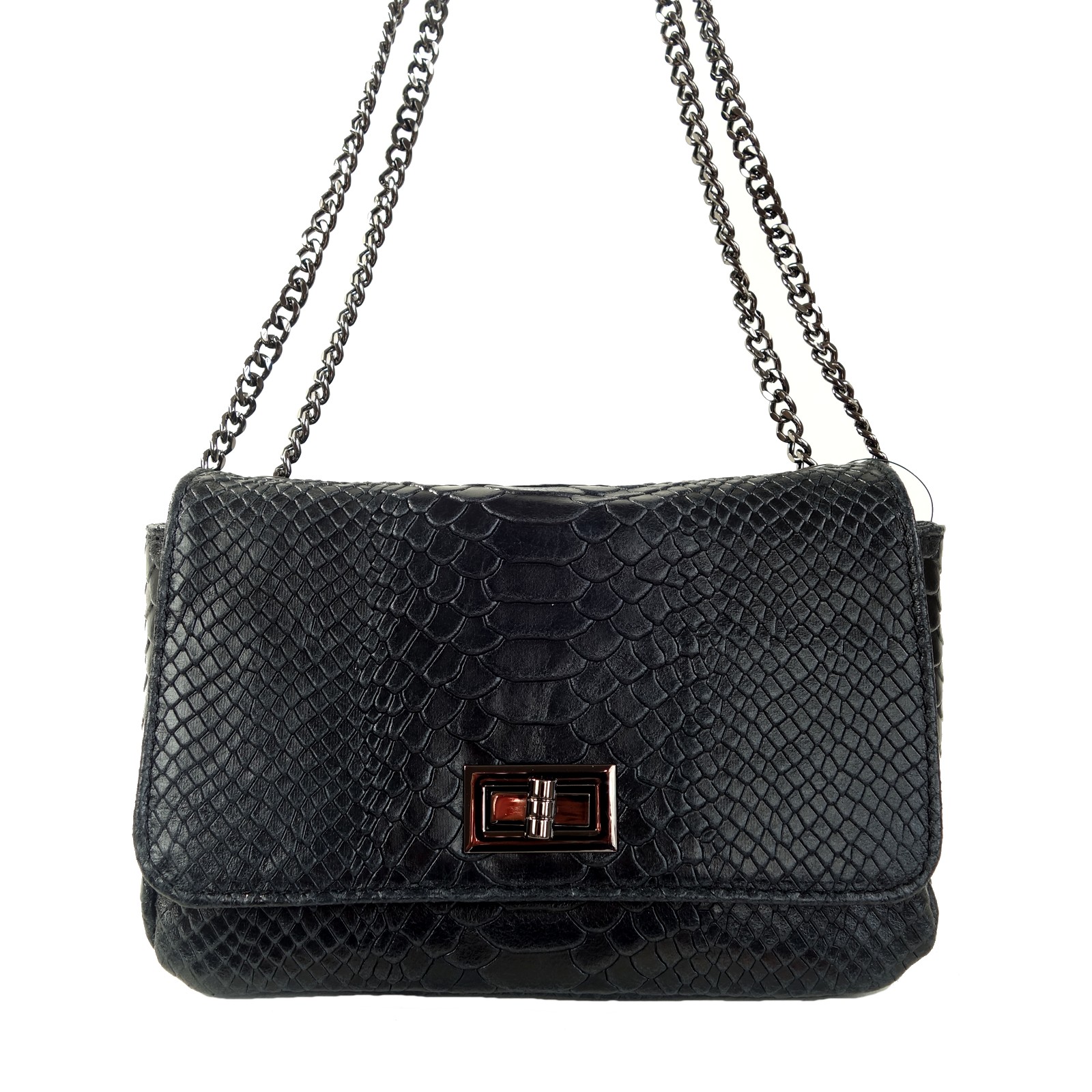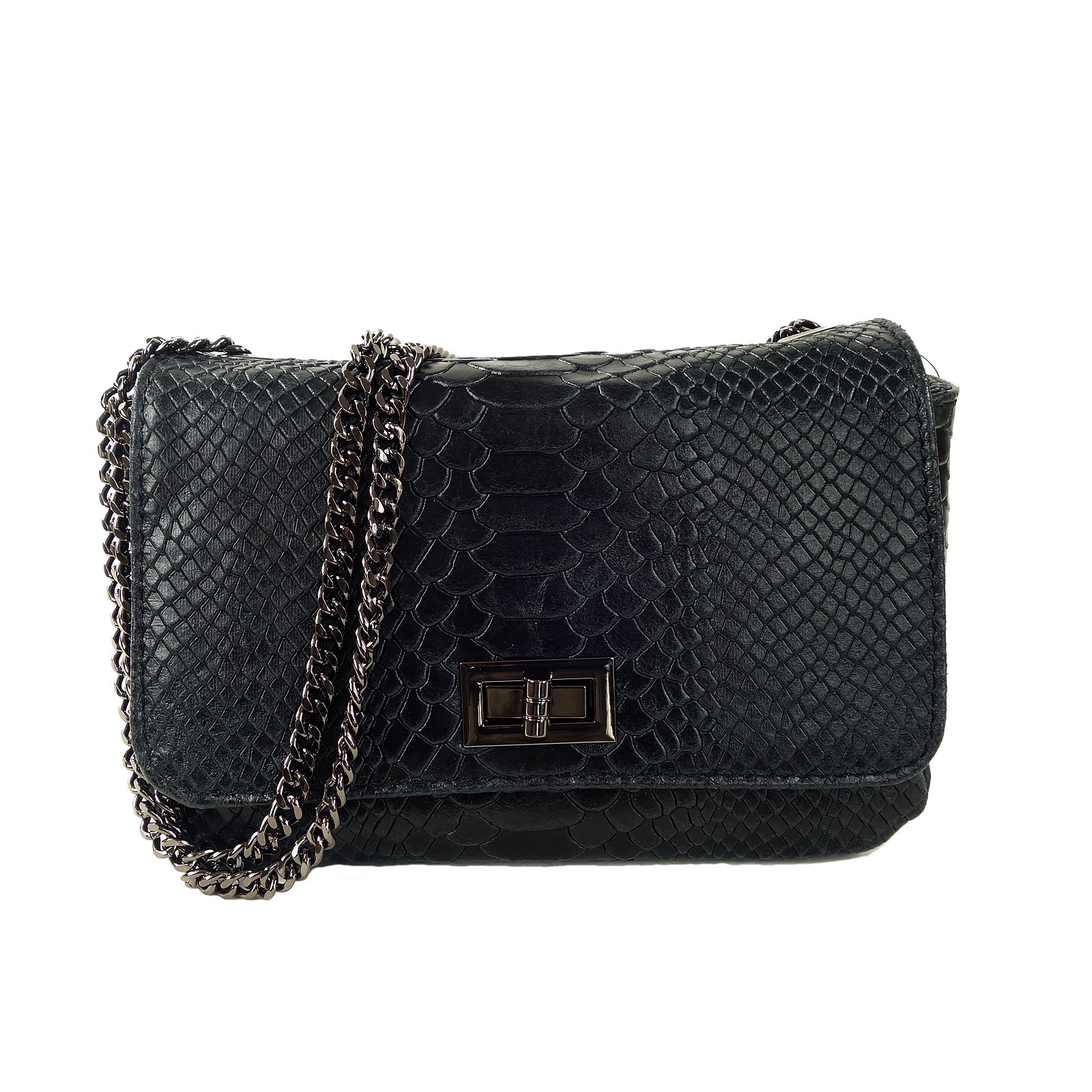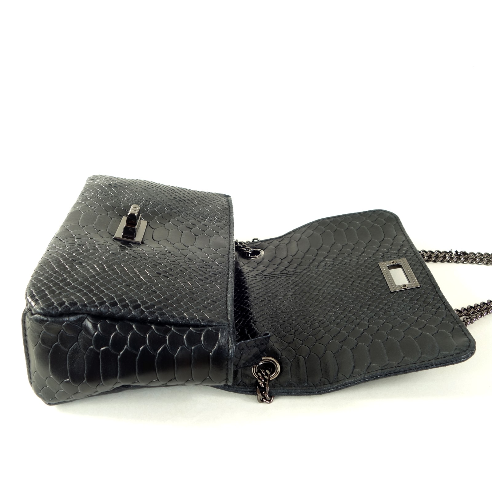 Sac pochette serpent noir chaine Eva