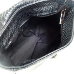 Ce petit sac femme se présente comme une pochette à rabat en cuir impression serpent avec léger relief de couleur noir. Il se porte en travers ou à l’épaule avec sa chaine métal coulissante.