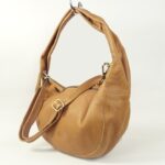 Si vous aimez les sacs à main d’esprit moderne et intemporel, ce modèle vous intéressera pour sa ligne gracieuse et arrondie de banane ou son beau cuir souple et mat de couleur camel.