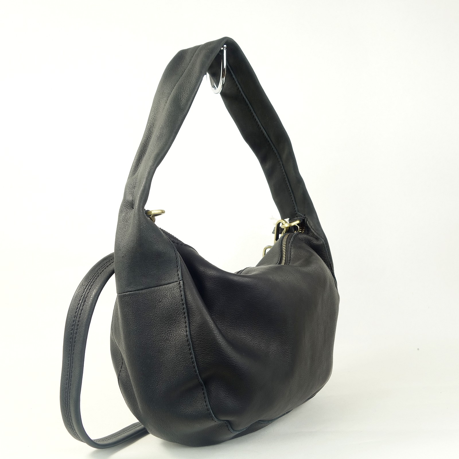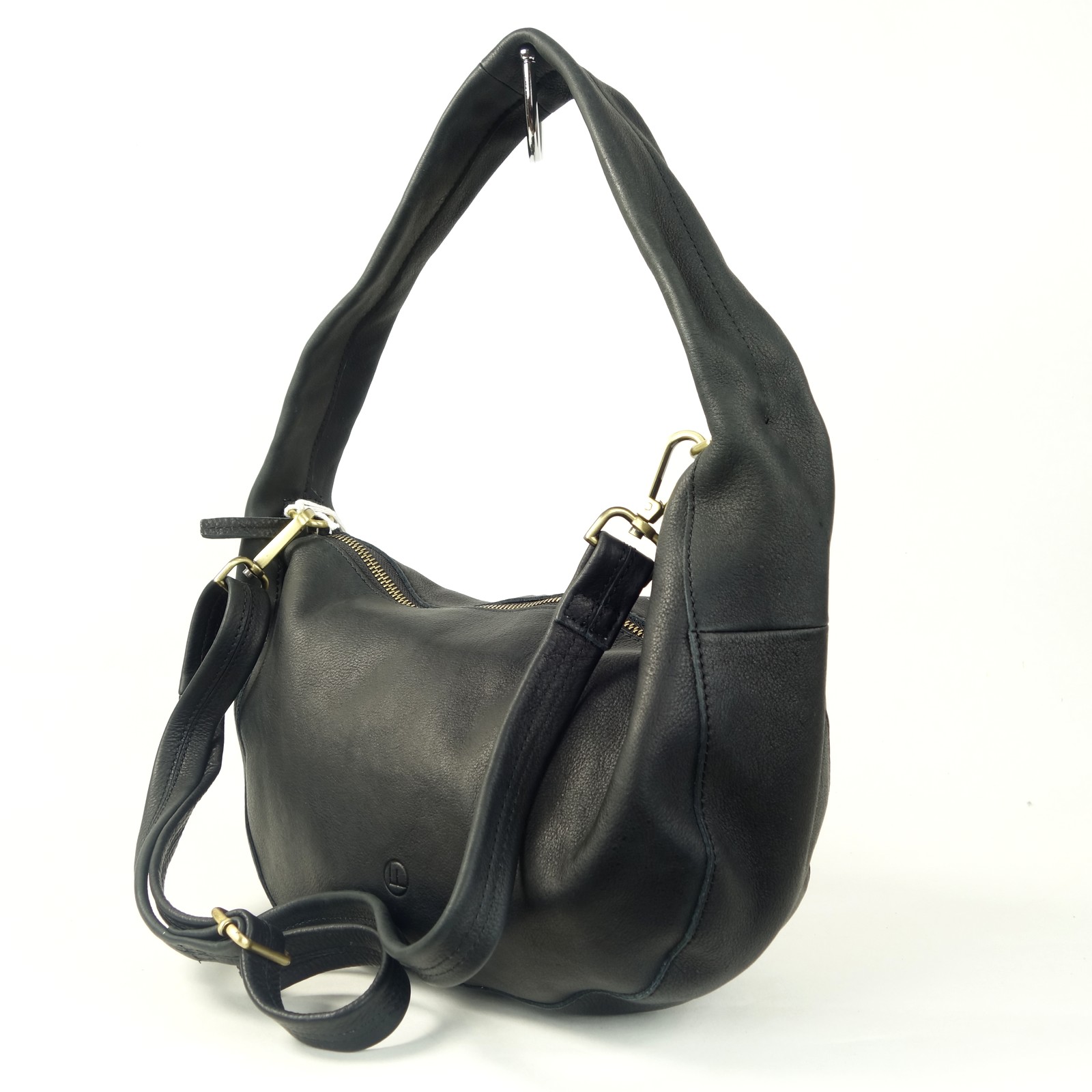 Si vous aimez les sacs à main d’esprit moderne et intemporel, ce modèle vous intéressera pour sa ligne gracieuse et arrondie de banane et son beau cuir souple de couleur noir.