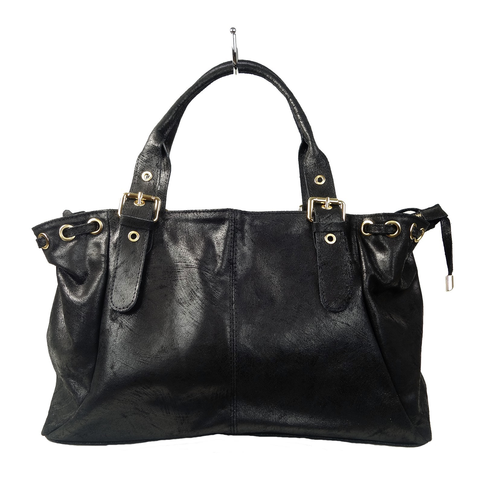 Son style particulier se distingue par son cuir souple à effet texturé. Jolis détails comme les lacets en cuir passées dans des oeillets métal ou ses anses à boucles de ceinture.