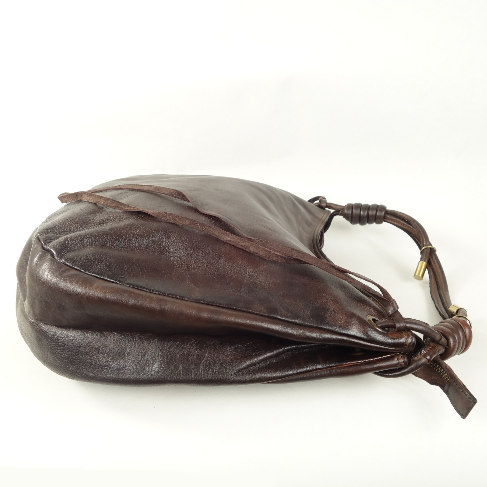Ce sac se porte principalement à l’épaule, comme un hobo, éventuellement à la main ou au bras. La fermeture de la partie interne est un zip classique avec curseur et tirette.