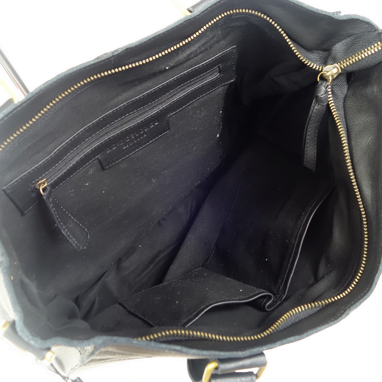 L’intérieur du sac est doublé de textile et comprend trois poches dont une à zip.