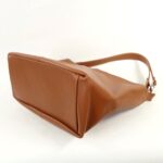 Vous aimerez la simplicité de la ligne qui s’accordera à votre style en toute saison. Et le bel aspect du cuir grainé souple au ton uni de couleur camel, un marron plutôt clair.