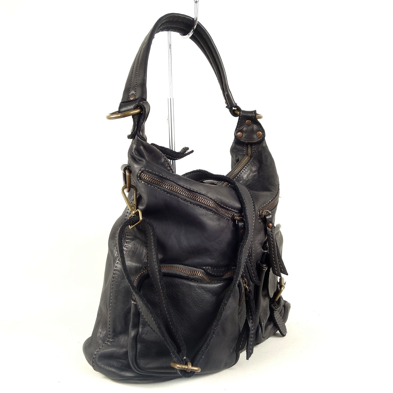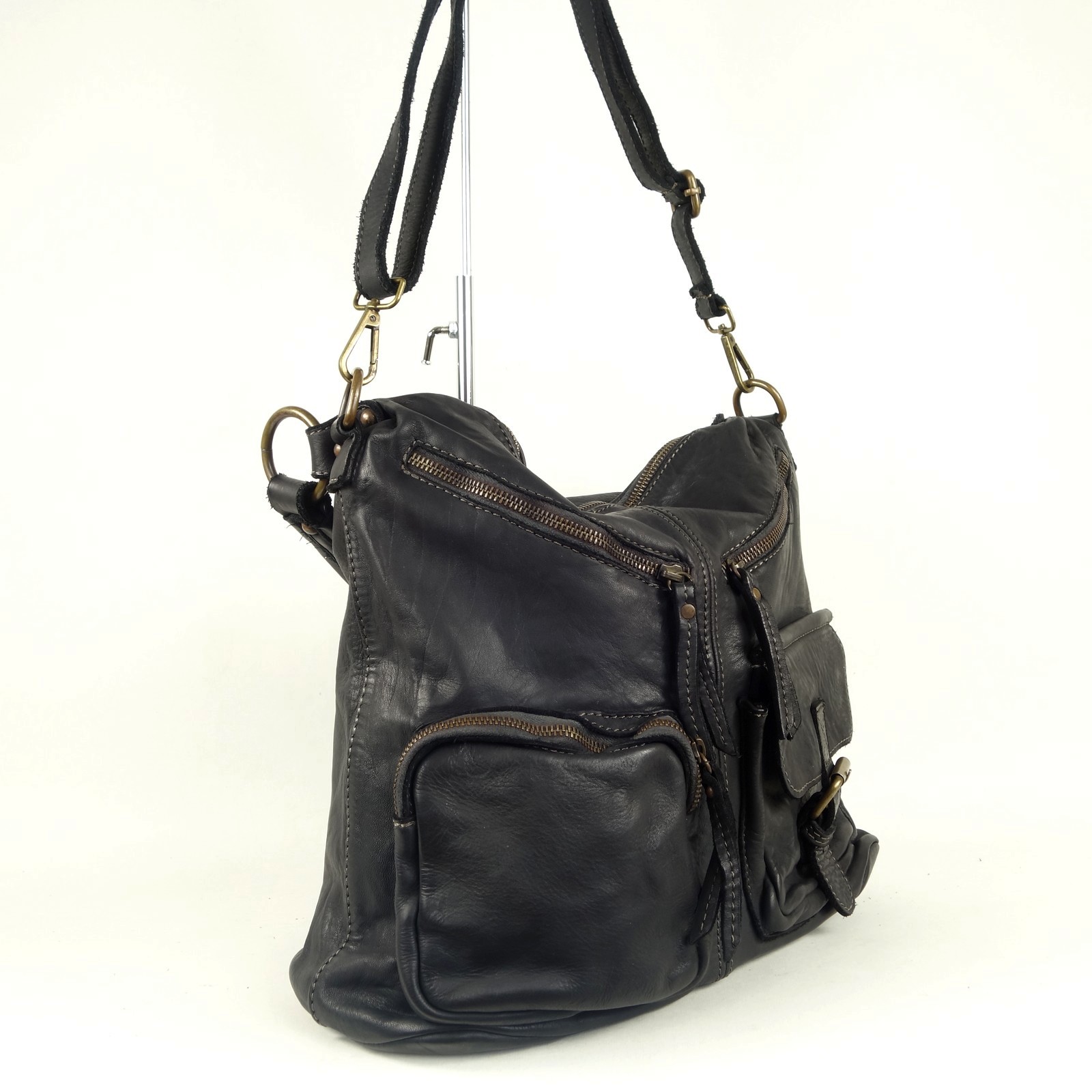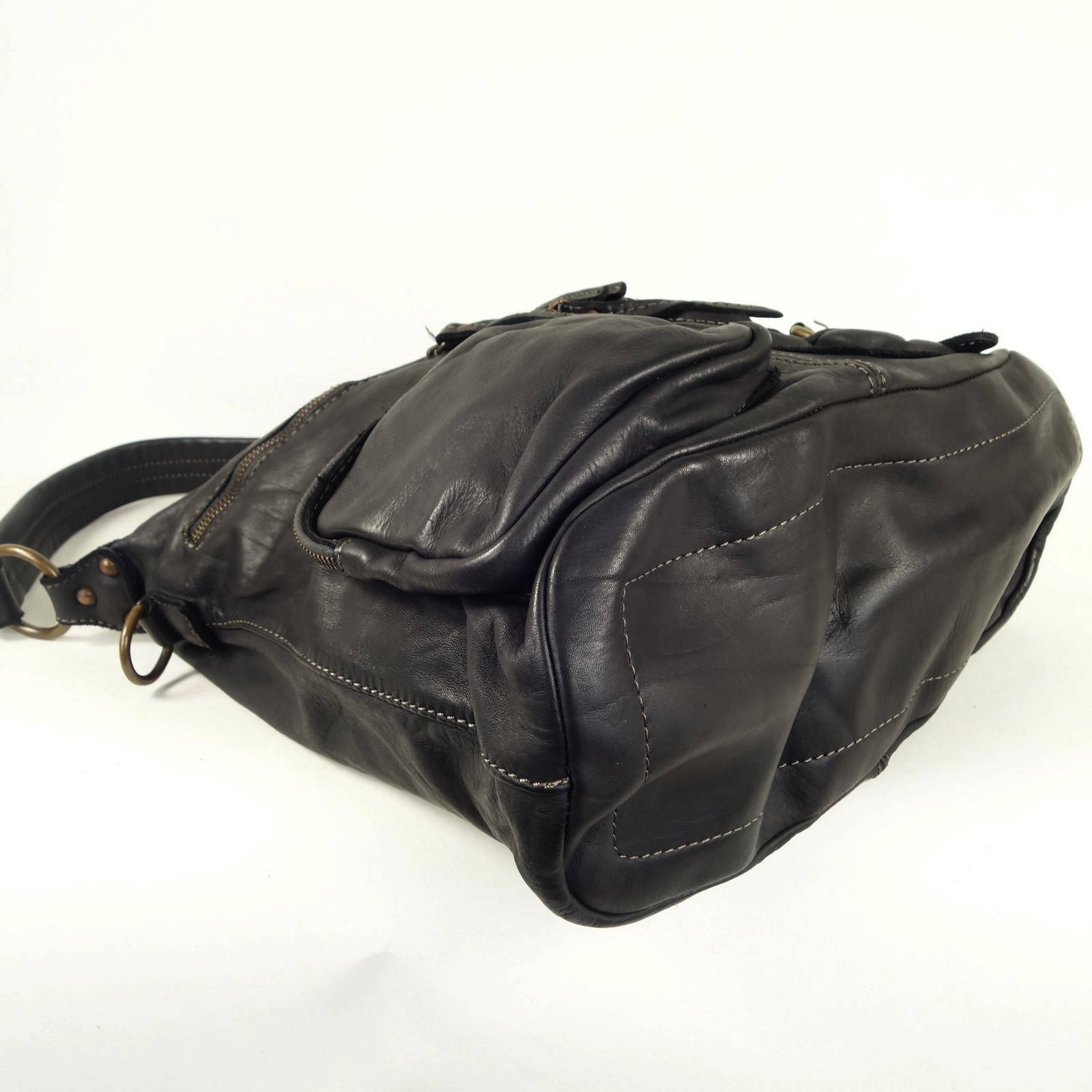 Ce modèle est en cuir souple noir finition vintage donc à effet patiné et texturé.
