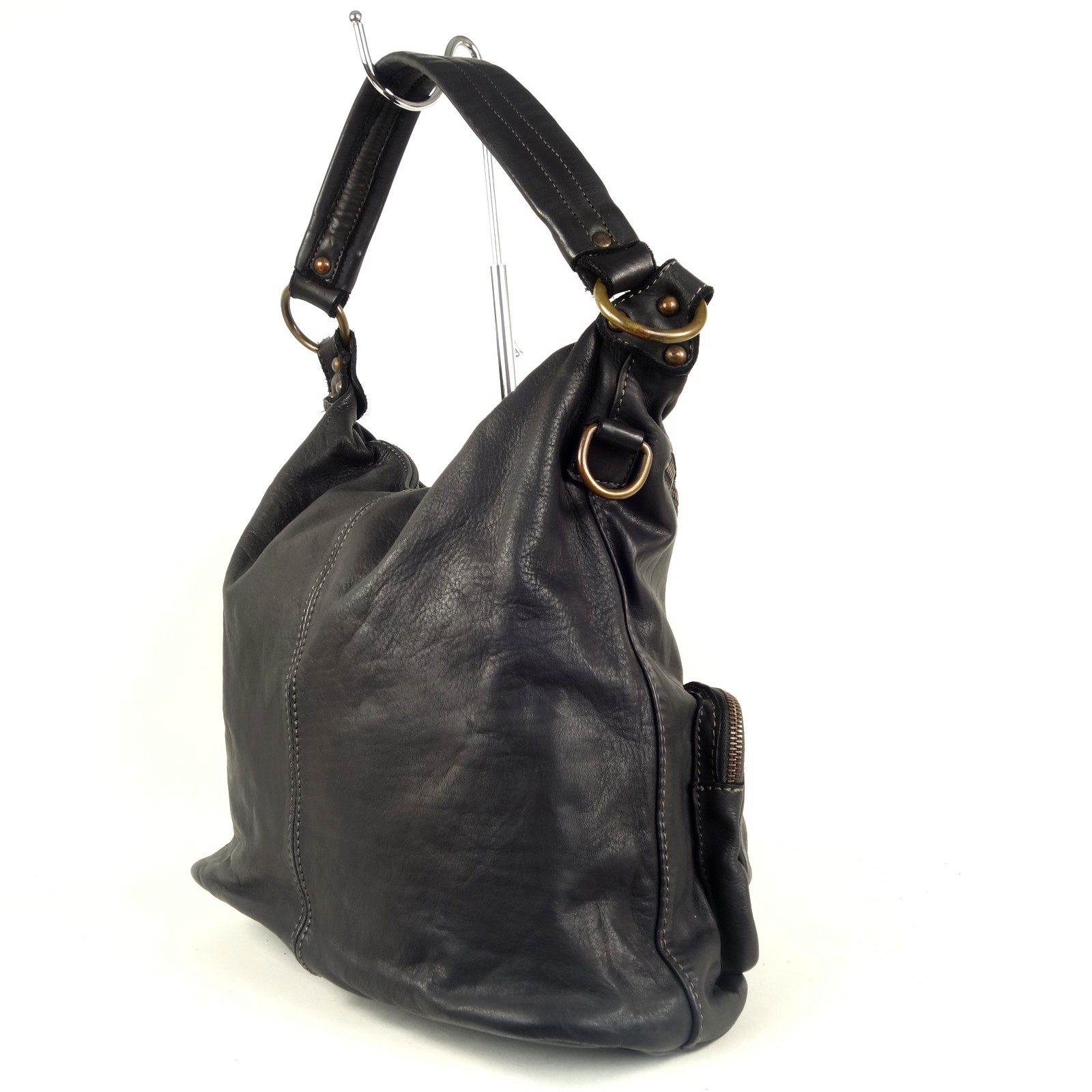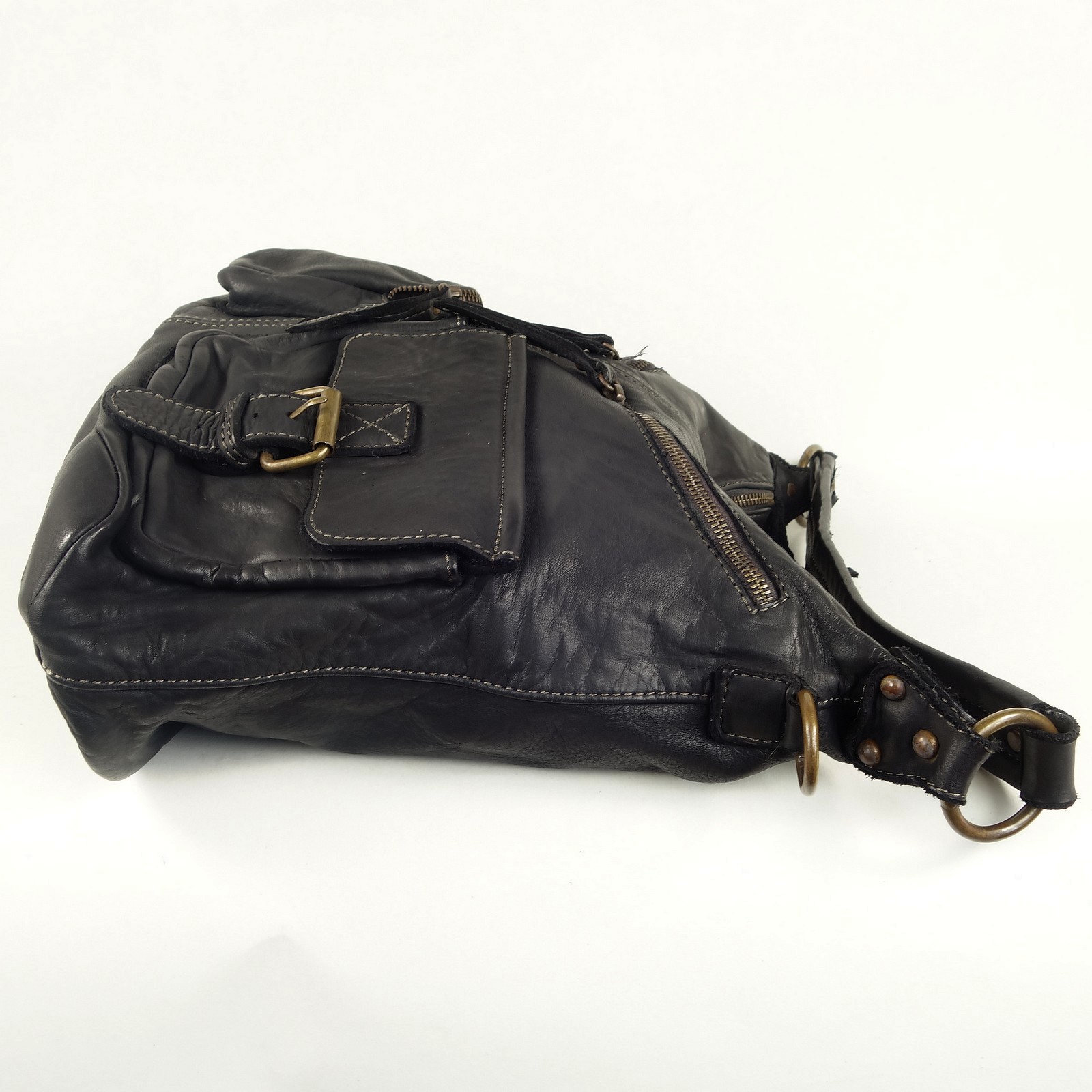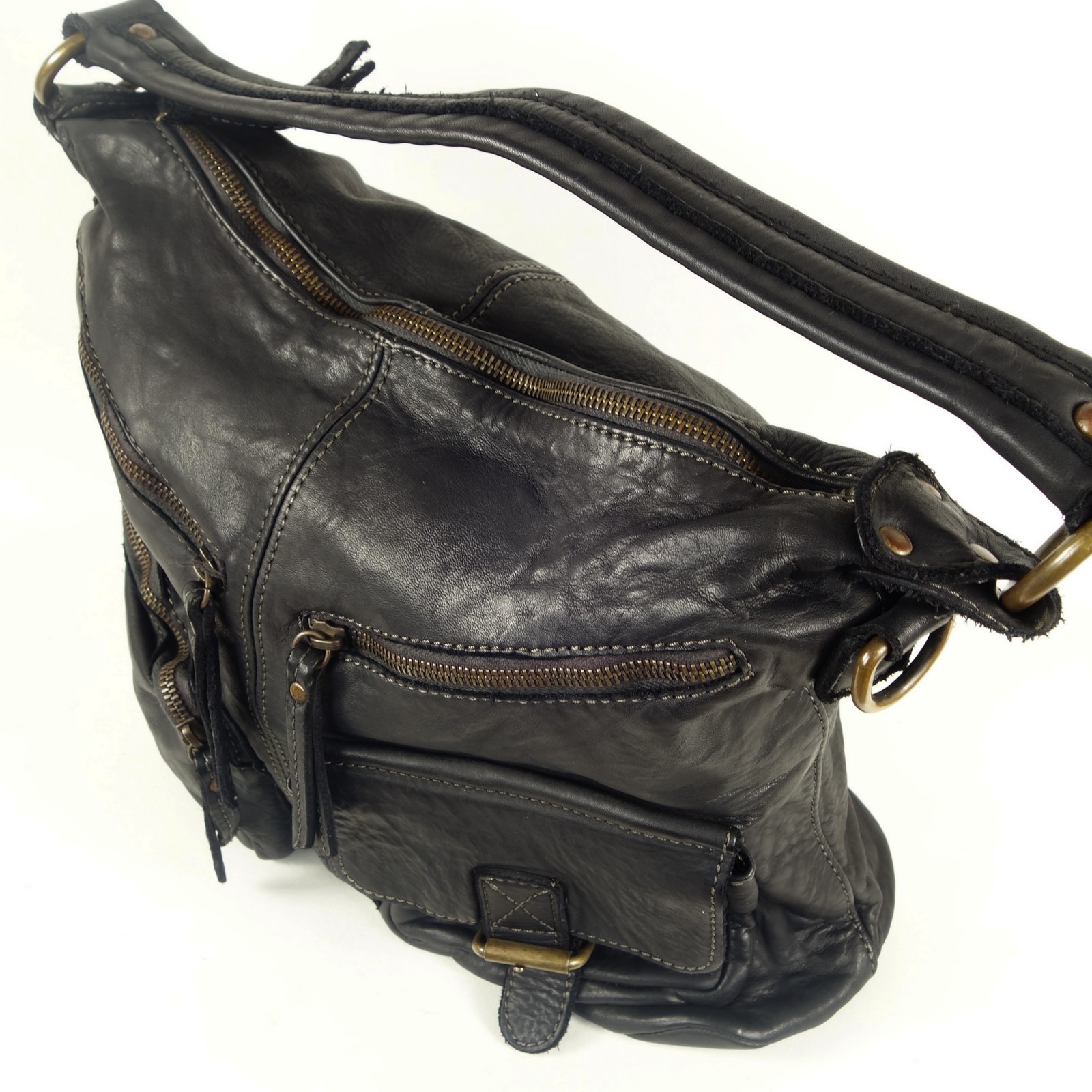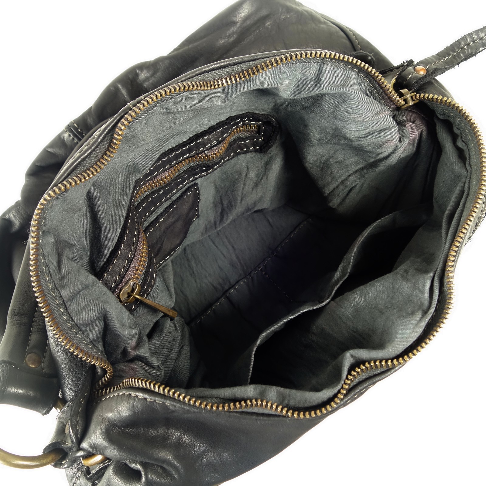 Ce modèle est en cuir souple noir finition vintage donc à effet patiné et texturé.