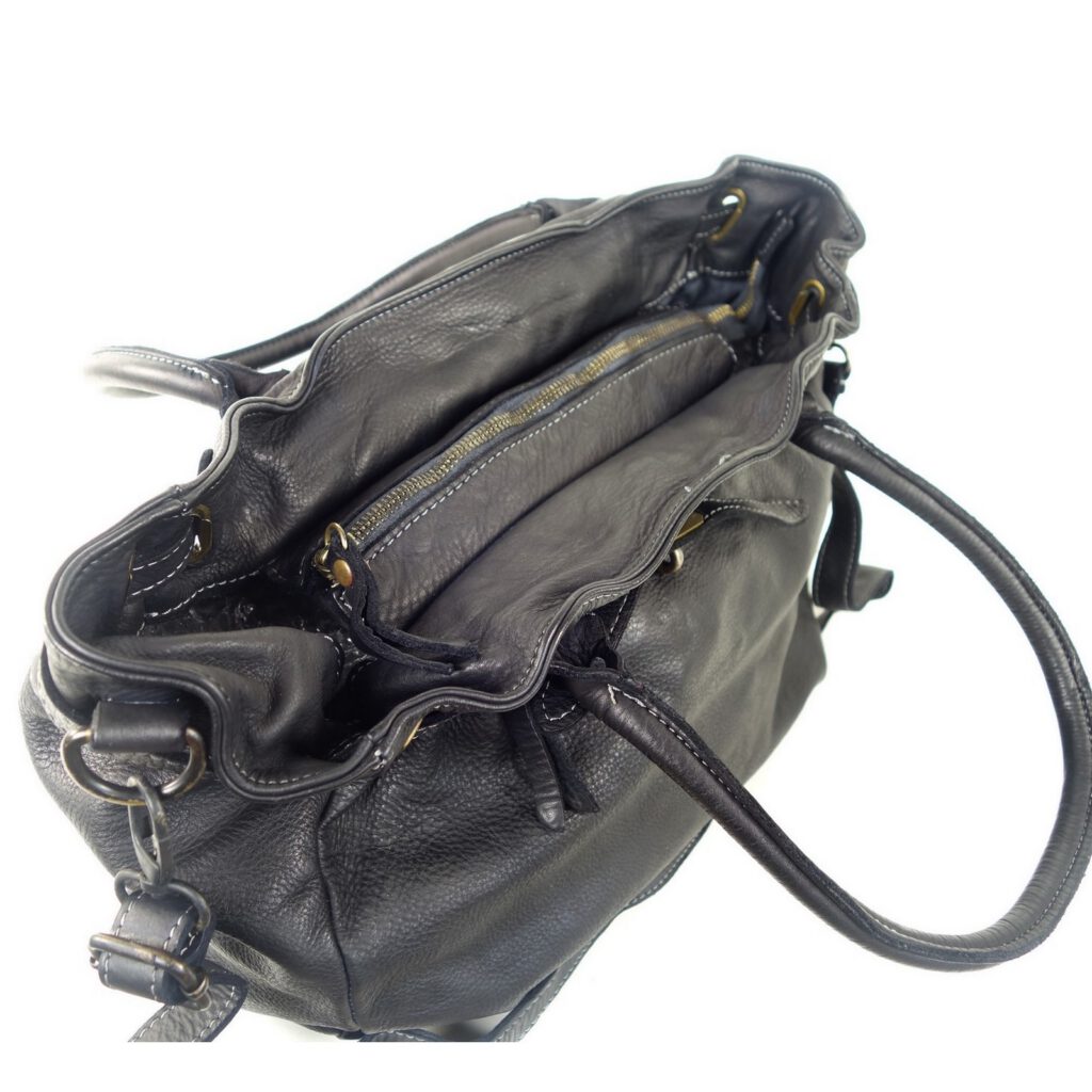 Cet élégant sac est porté à l’épaule ou en bandoulière. Son style rétro-chic et le cuir souple discrètement vieilli feront toujours leur effet en société.