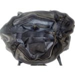 Il y a une poche zippée extérieure en façade plus une zippée au dos. La fermeture principale est une glissière classique. L’intérieur est doublé de textile et comprend trois poches dont une zippée.