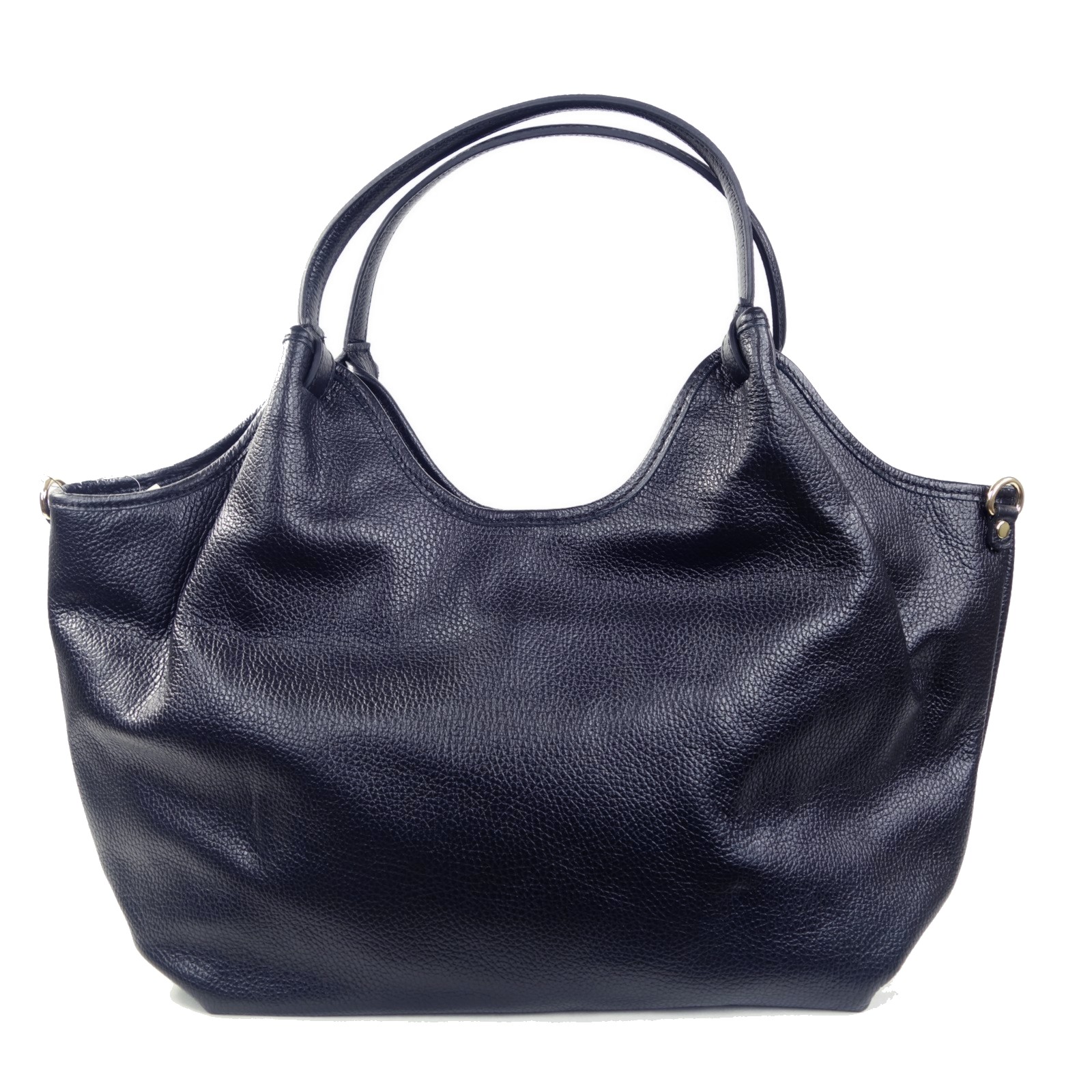 Si vous souhaitez pour votre prochain sac à main une ligne de charme, ce modèle de grand sac en cuir souple bleu marine devrait vous plaire.