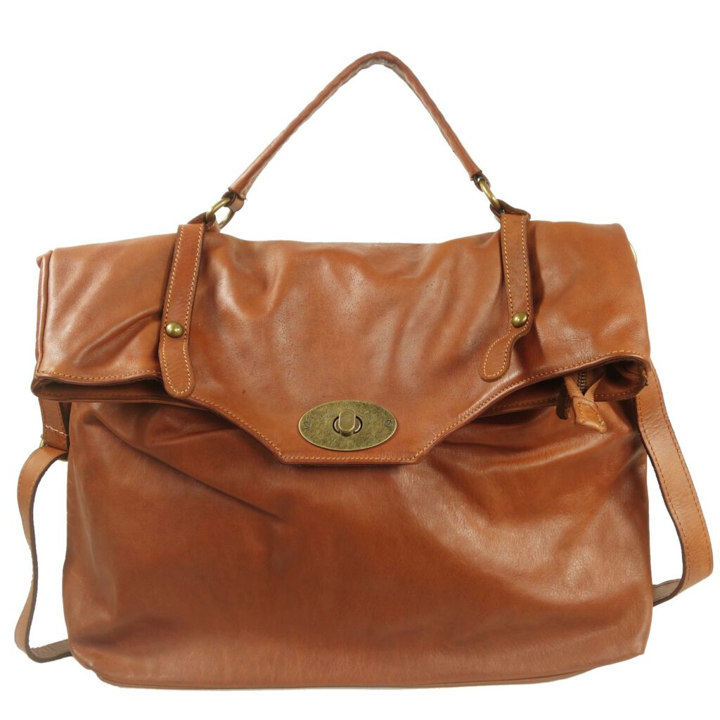 L’admirer, c’est un peu l’adopter! Caractère et style qui accroche le regard, ce grand sac à main pour femme en cuir vintage est de couleur naturel marron clair.