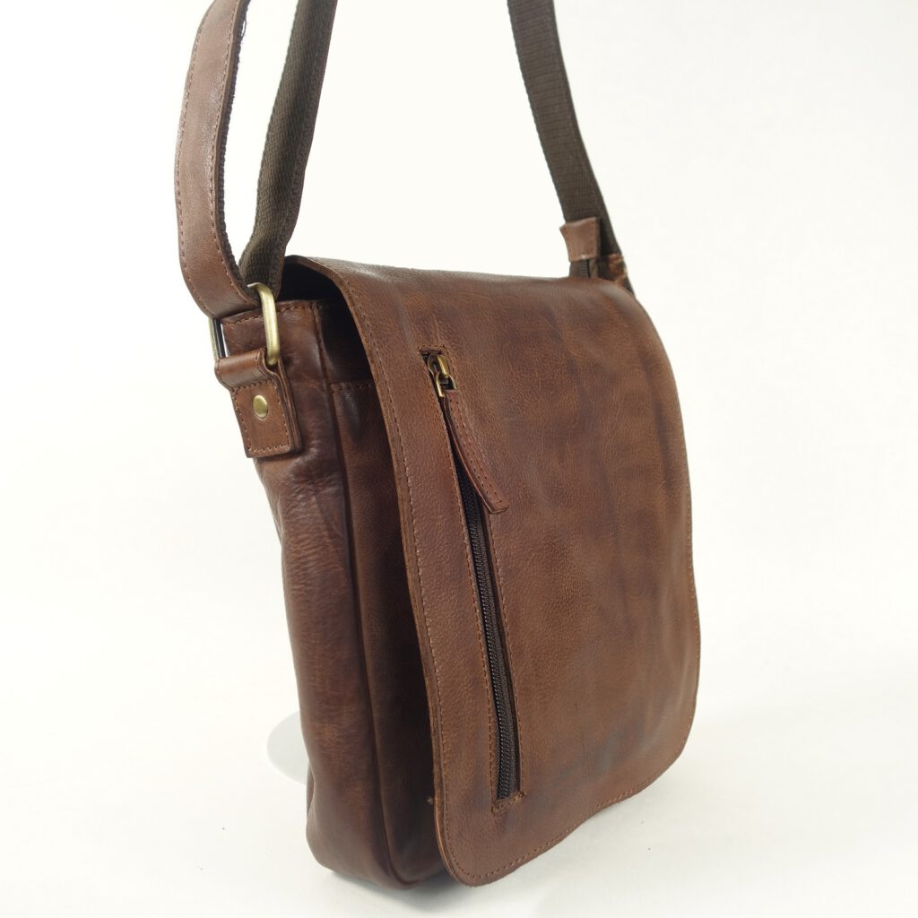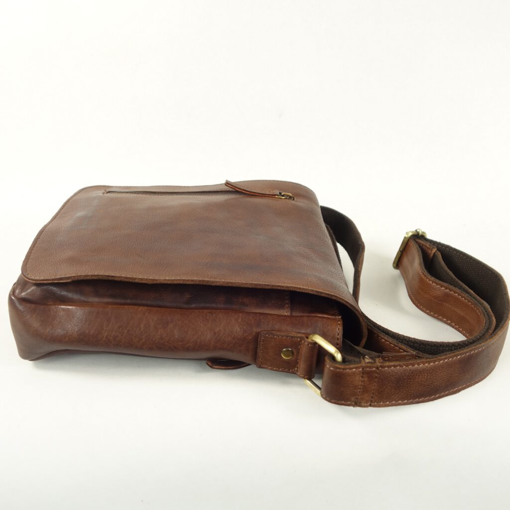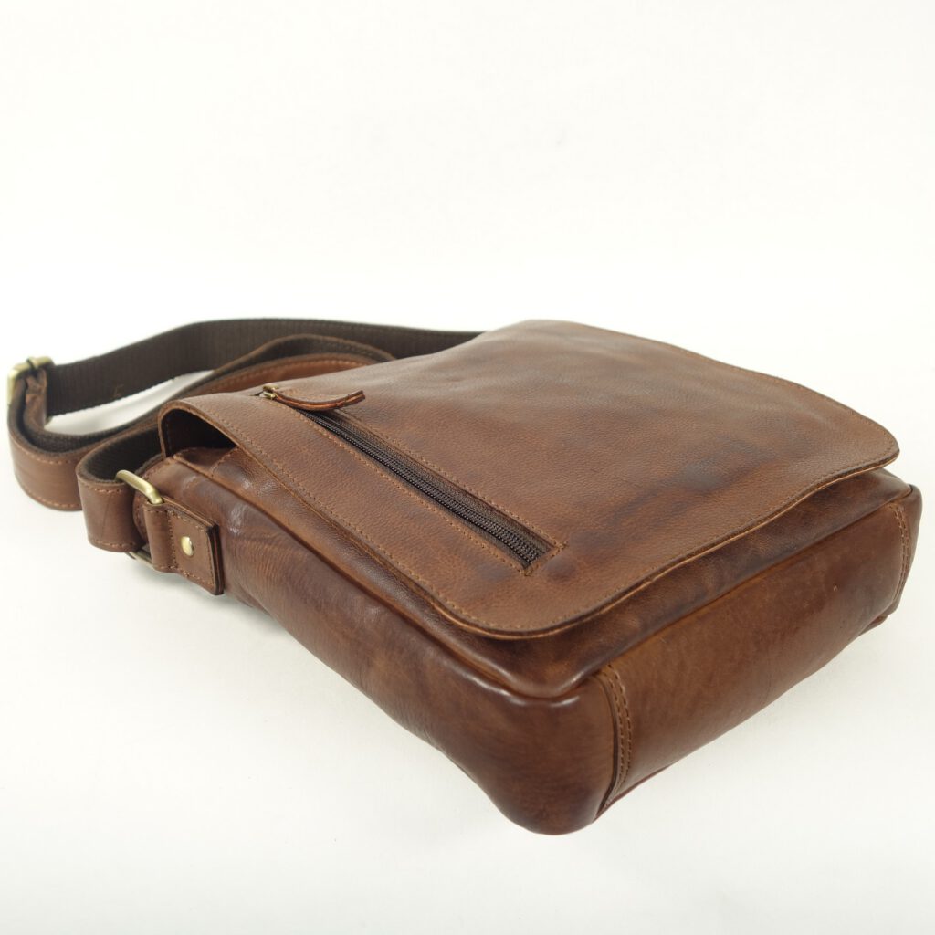 Vous serez intéressé par le look actuel de ce sac bandoulière pour homme en cuir souple marron avec une belle finition vintage.