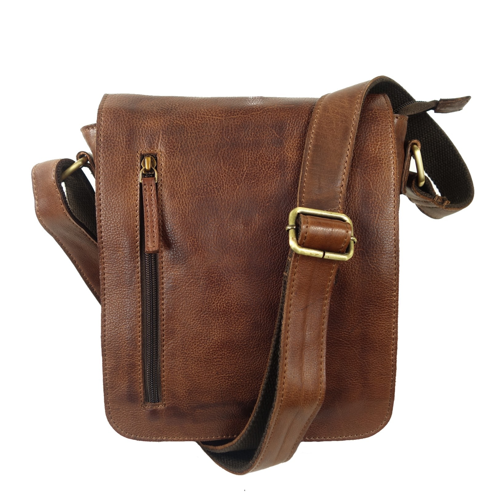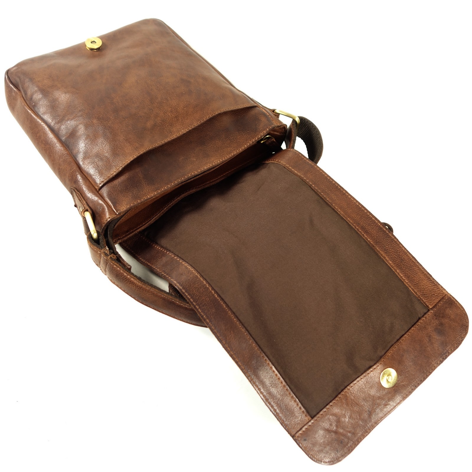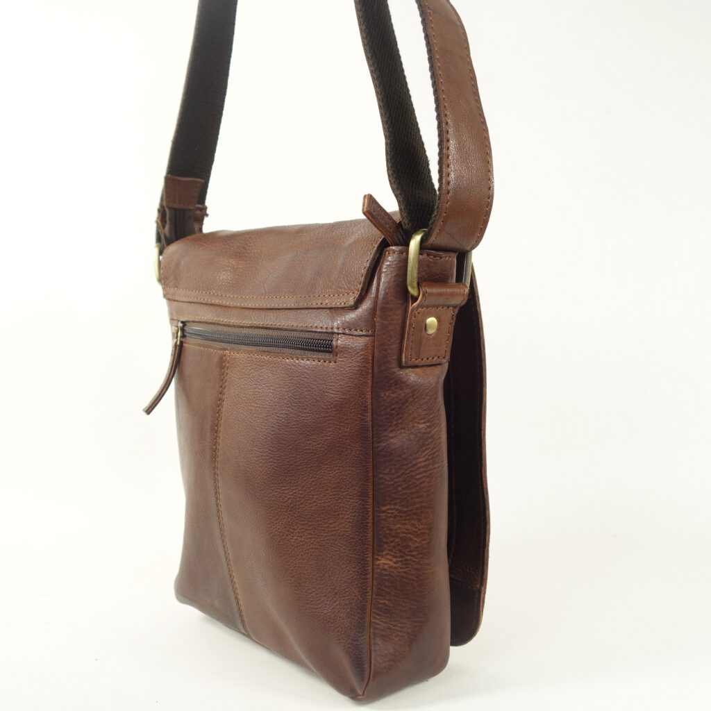 Vous serez intéressé par le look actuel de ce sac bandoulière pour homme en cuir souple marron avec une belle finition vintage.