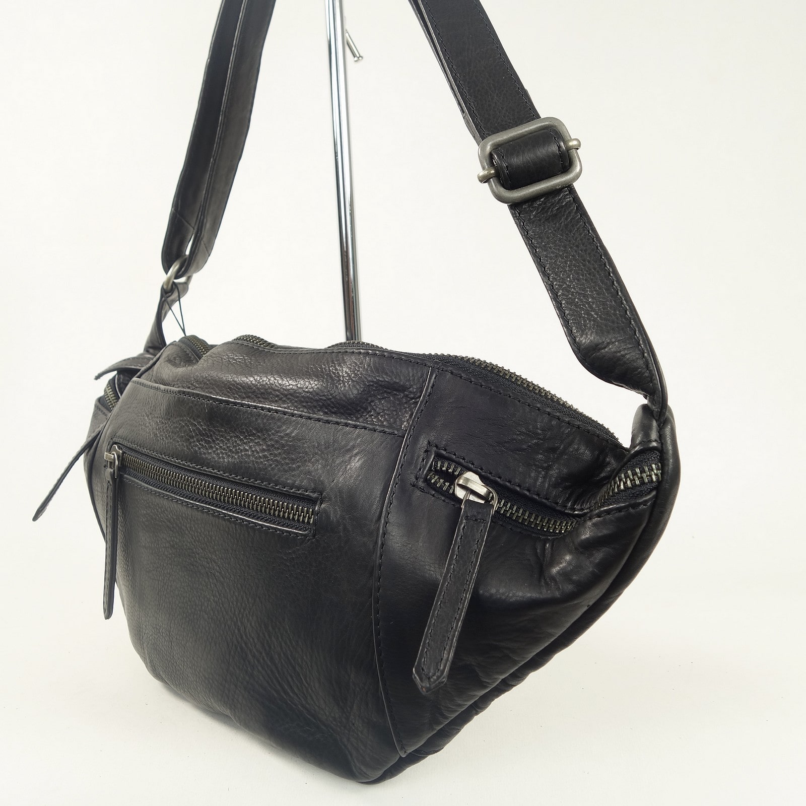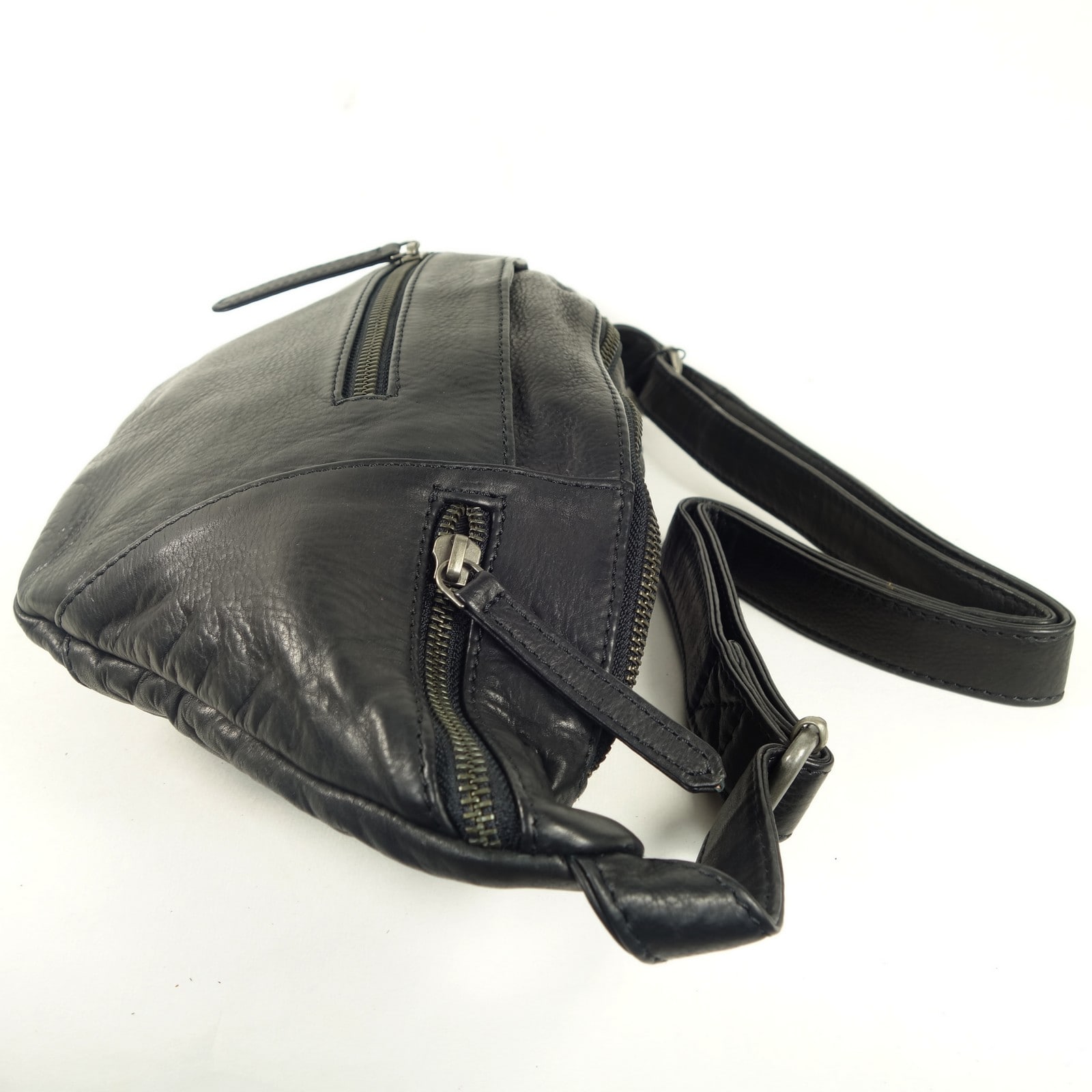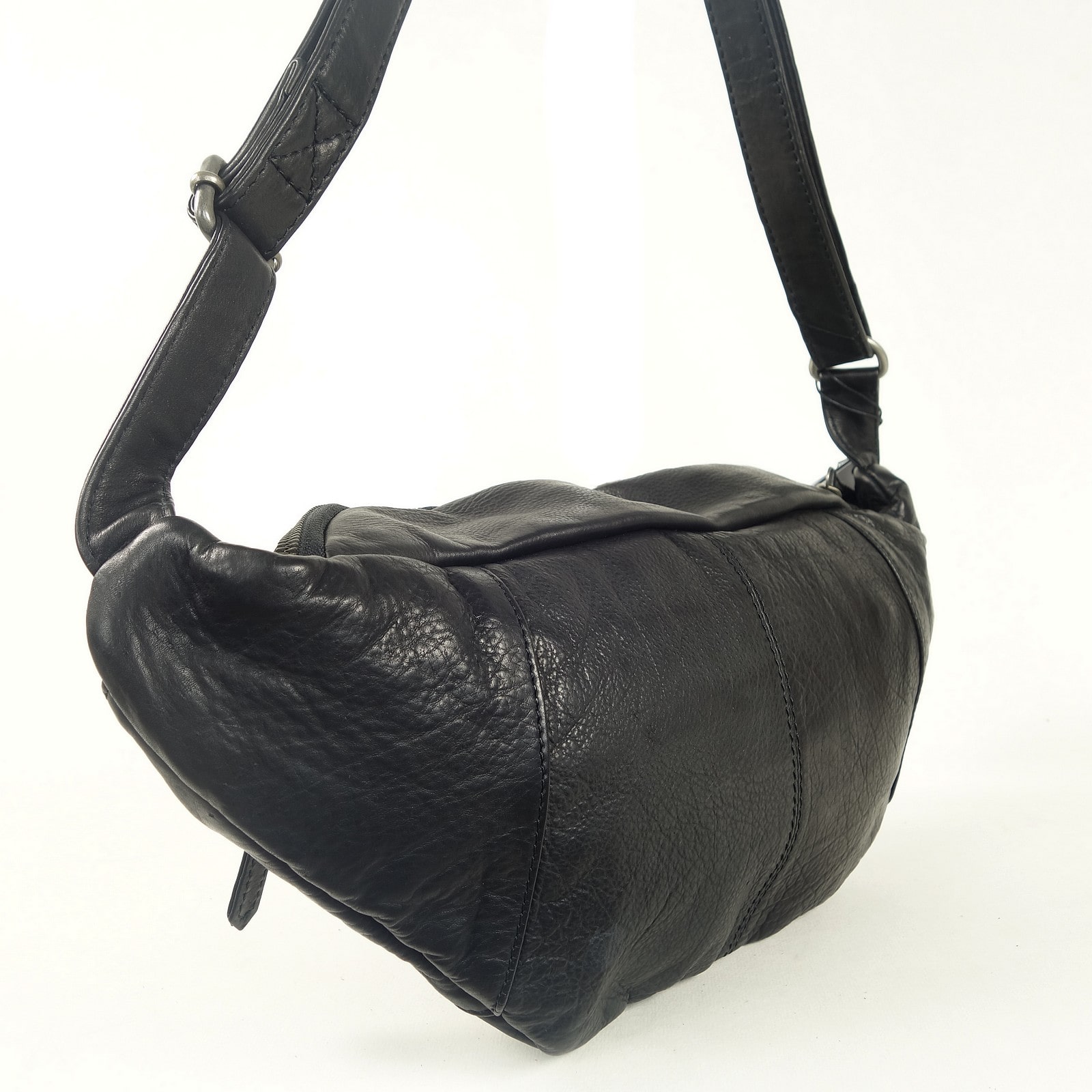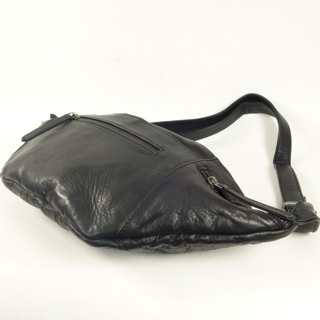 Il y a les classiques du sac homme et il y a les modèles plus tendance. Ce sac holster en cuir souple noir est de cette dernière catégorie. Il se porte en travers sur la poitrine ou bien à l’épaule.