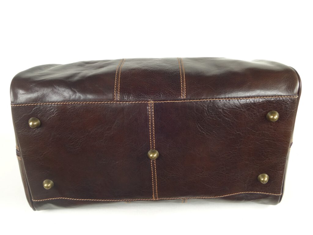 Ce petit sac de voyage weekend pour homme est en cuir de vachette couleur brun foncé. Il est de fabrication made in Italie.