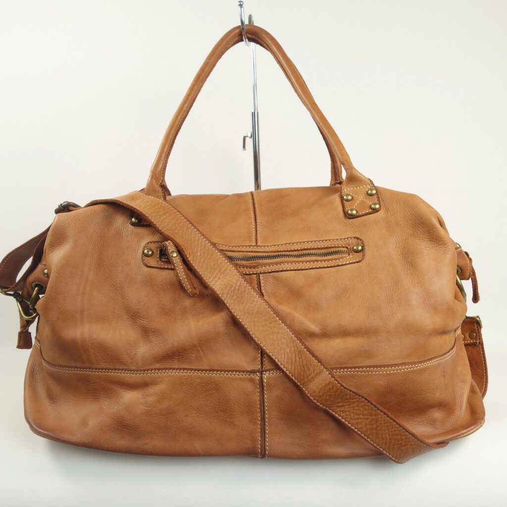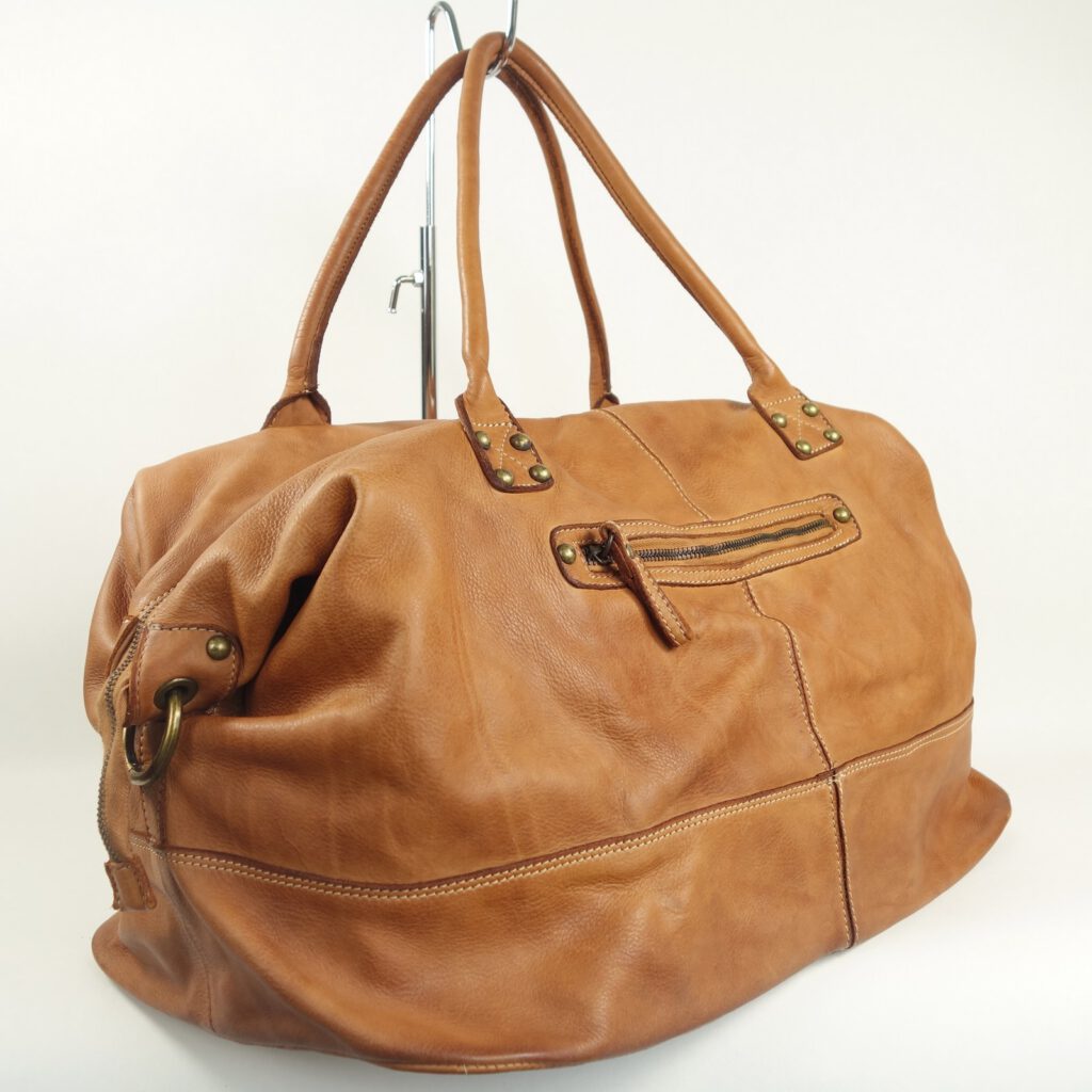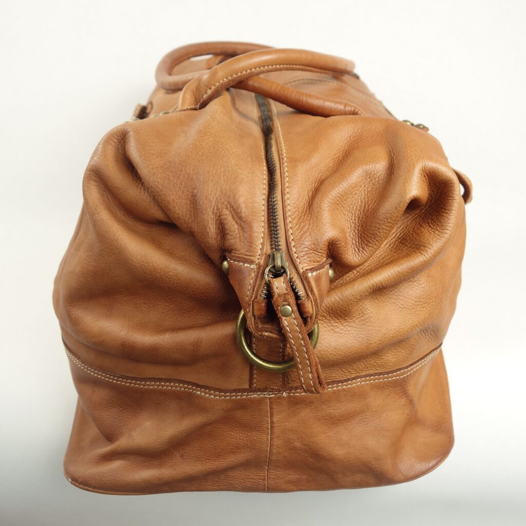 Partir en déplacement ou en vacances avec ce beau sac de voyage en cuir couleur naturel, voilà qui devrait être agréable et pratique si vous goûtez au plaisir de l’accessoire de qualité.