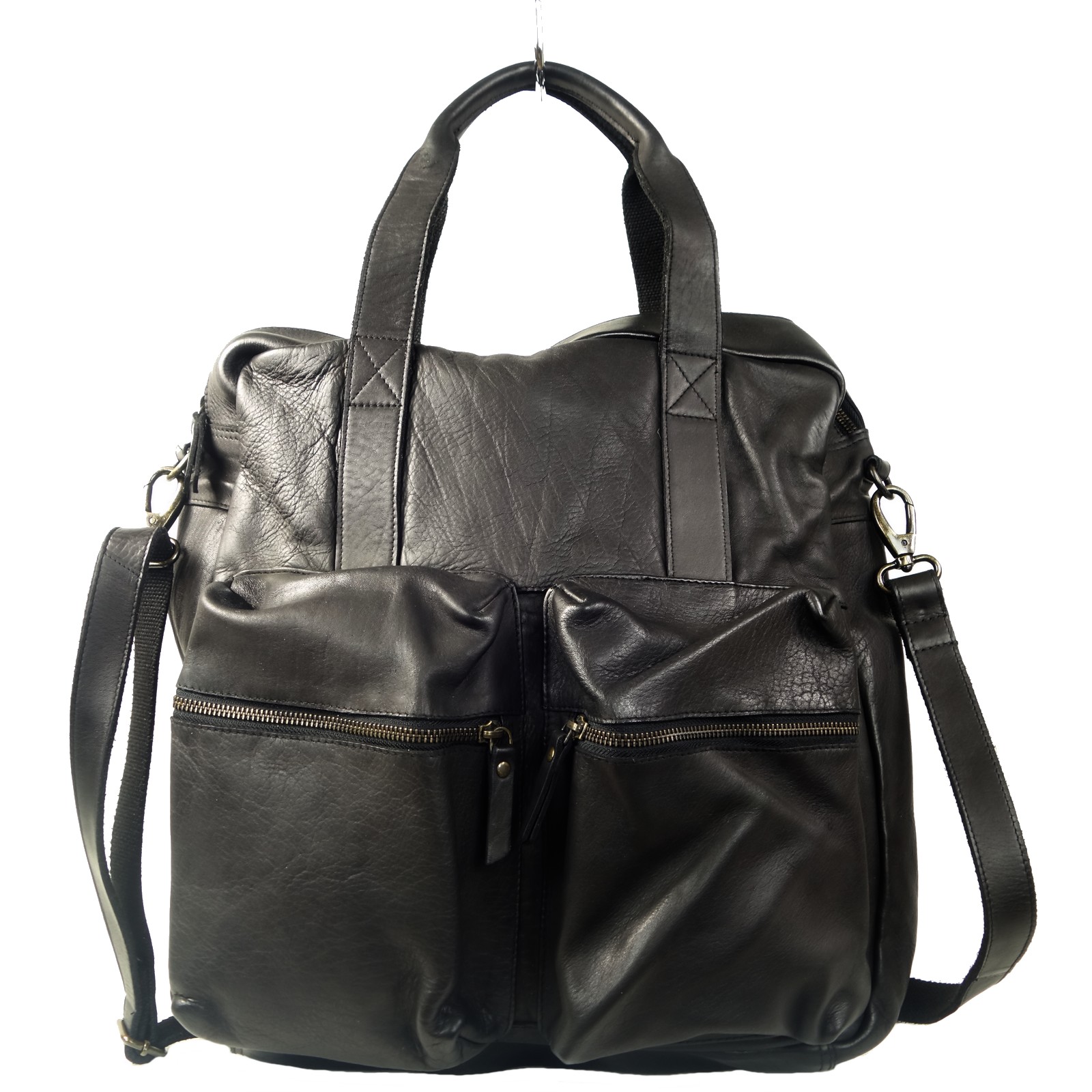 Ce grand sac en cuir noir pour pc portable, documents et dossiers offre une ligne qui a du caractère et une ergonomie intéressante.